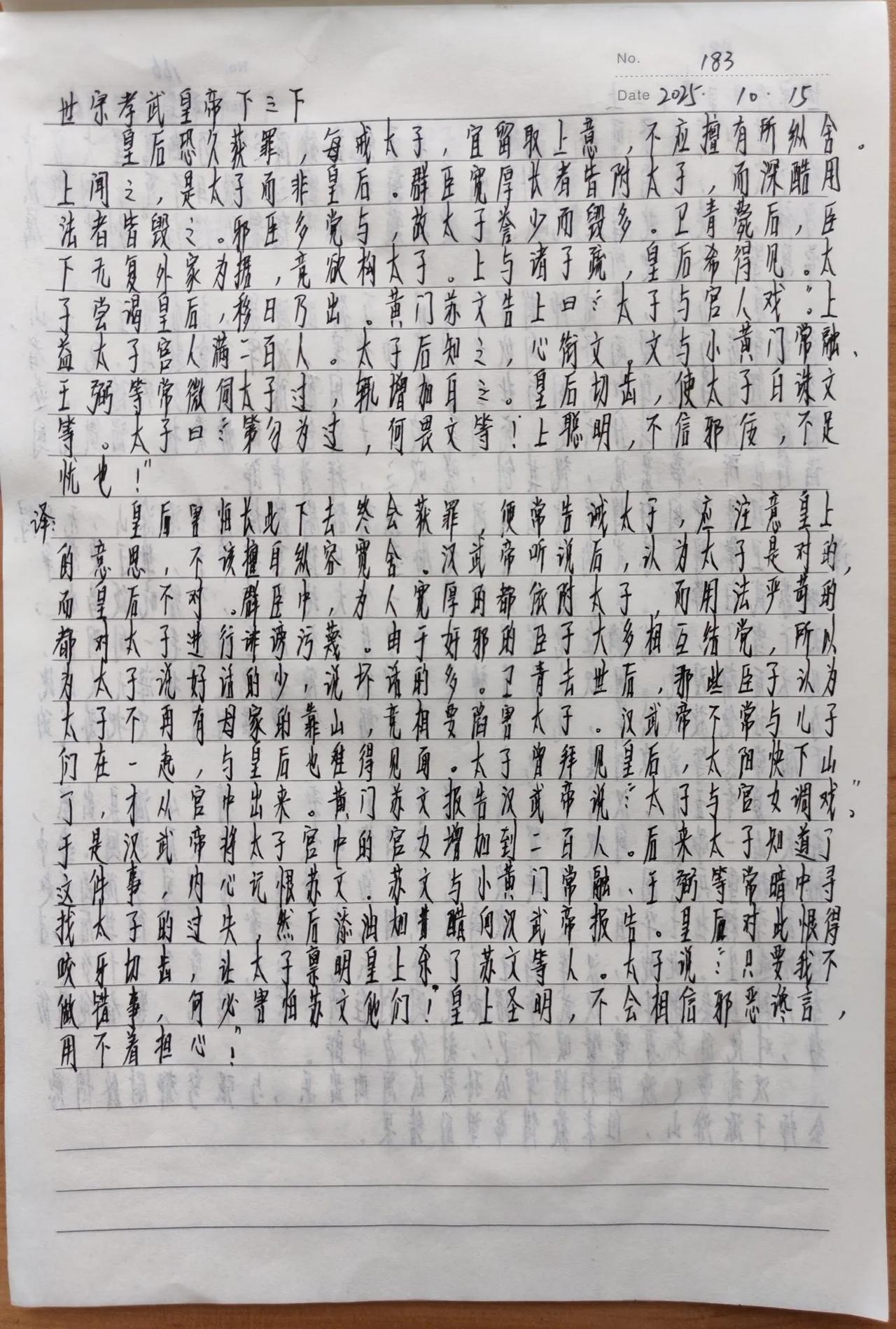 看帝王权谋,抄《资治通鉴》第183天。 皇后卫子夫担心太子常与汉武帝及执法官员意见不同、长久下去可能获罪,便告诫太子要注意顺从汉武帝的意思。汉武帝知道后,却说太子做的对,皇后不对。 太子得到为人宽厚的官员支持,但用法严苛的官员都污蔑诽谤太子,这些奸邪的官吏又多结党,导致说太子的坏话很多,相比之下说好话的就少了。 太子的舅舅大将军卫青去世后,那些奸邪官吏认为太子失去母家靠山,于是争着想陷害太子。 黄门都敢构陷太子,皇后很愤恨,但太子说,自身做得正,不怕他们。