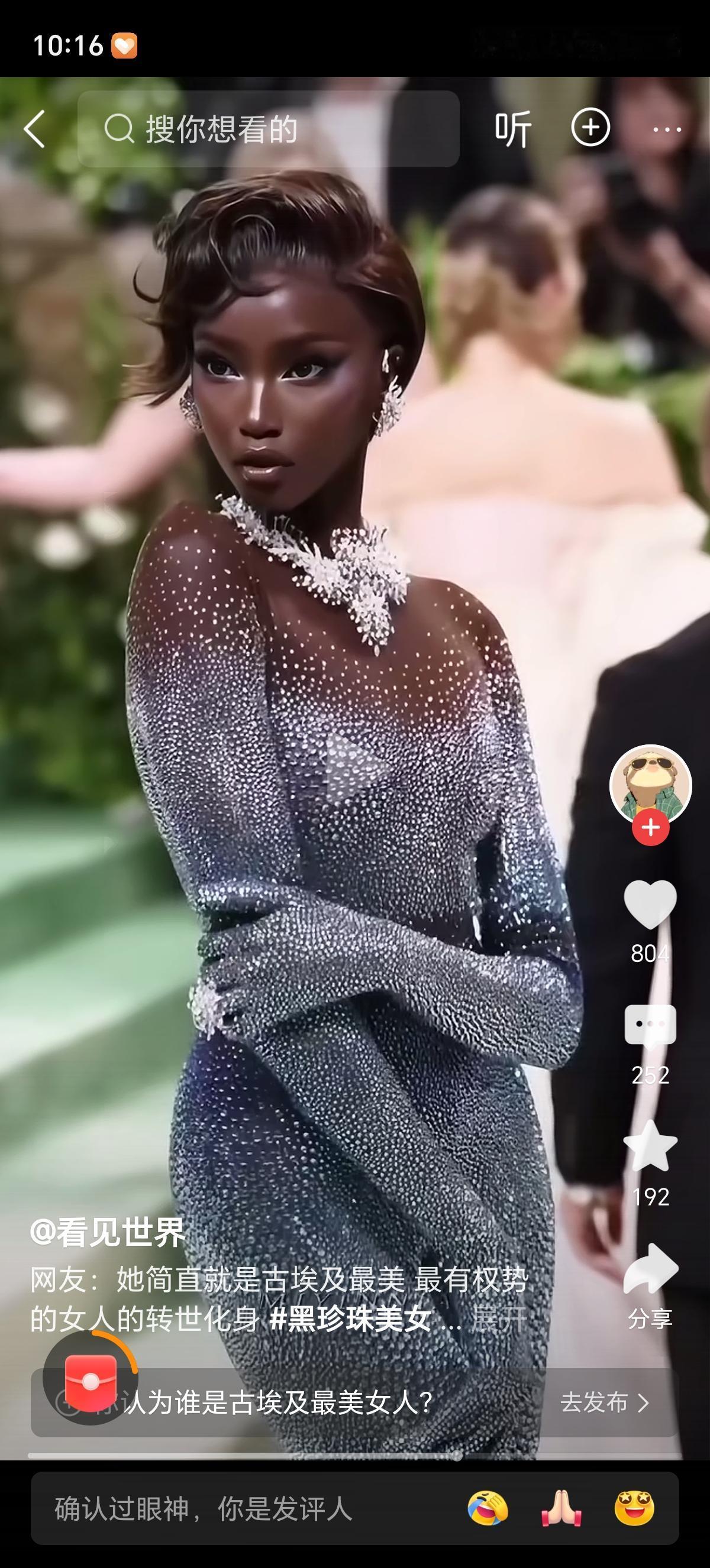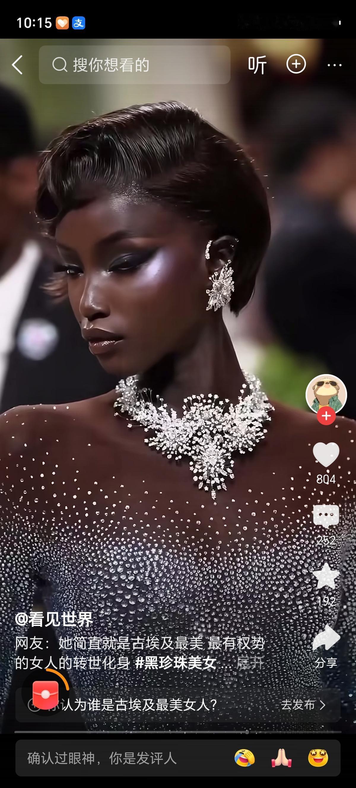 我说这衣服咋这么亮呢,9万8千多颗水晶镶嵌的啊,真闪啊,在灯光下就是个发光体啊,大晚上出门也得锃亮锃亮的,水晶配黑美人真是绝配啊!