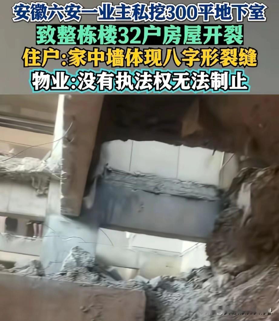 安徽32户家庭遭遇邻居的私挖行为,导致房屋严重受损,墙体开裂。业主们苦不堪言,物