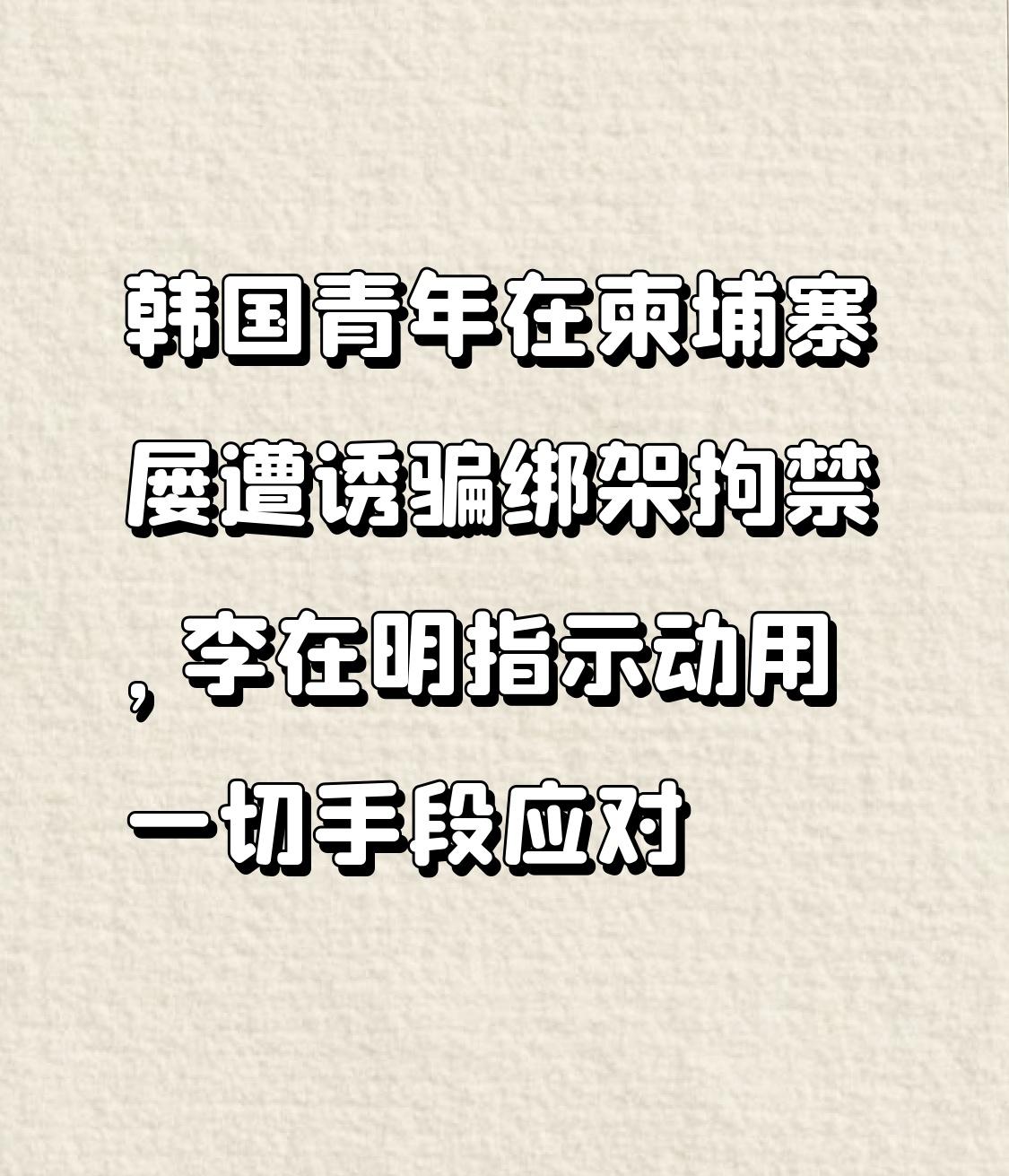韩国青年在柬埔寨的遭遇太惨了。今年8月,一名20多岁韩国大学生疑遭当地犯罪团伙拘禁虐待致死,死因为“心脏病发作(因酷刑引发剧痛)”。从数据看,此类案件激增,2021年仅有4起,2024年220起,今年1 - 8月就达330起。这些受害者多是求职年轻人,被高薪海外招聘诱骗。 李在明也重视起来了,10月11日指示外交部全力保障公民安全,14日又让有关部门动用一切手段应对。韩国外交部长也召见柬大使抗议。不过柬方坚持“本人报案”,还被指执法不力。这真是“青年失业时代所造成的悲剧”啊。