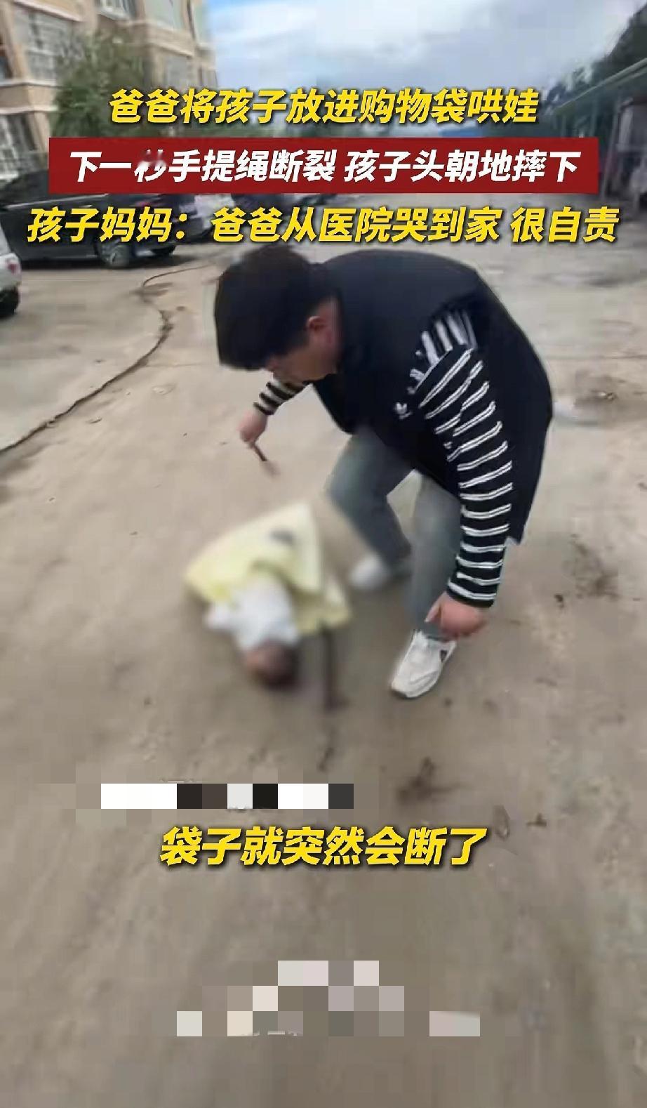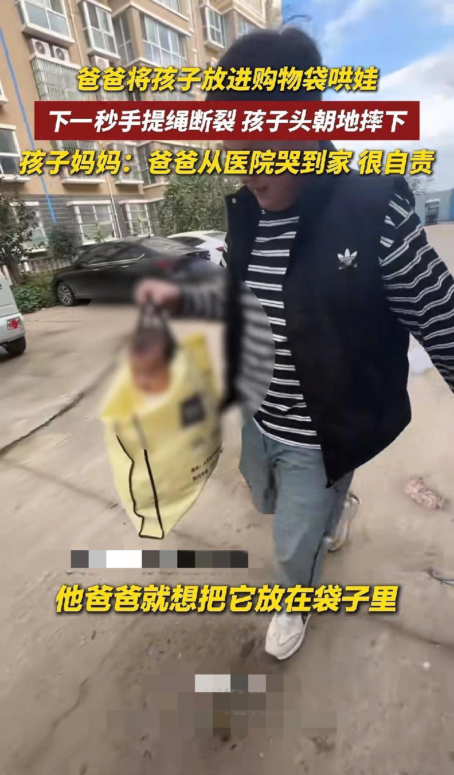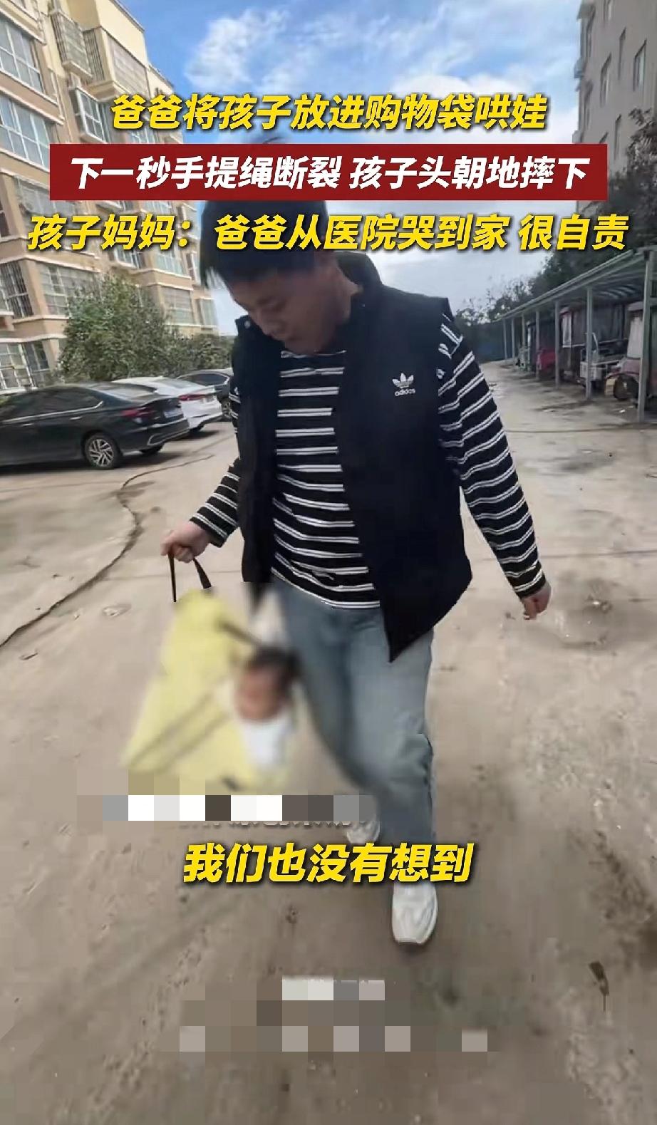 “心太大了吧!”河南一名宝爸将孩子放到购物袋里哄,结果意外发生了。由于购物袋的手