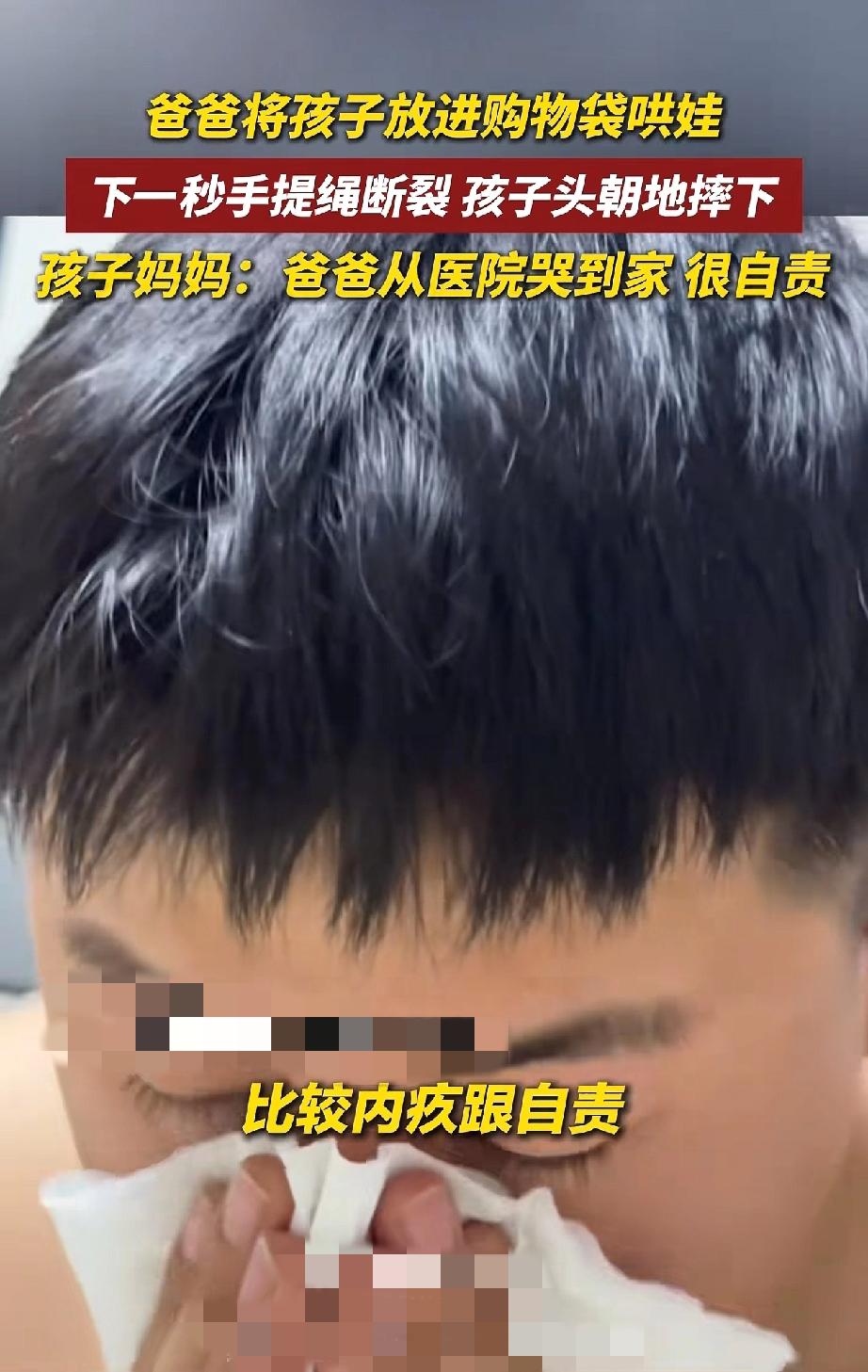 “心太大了吧!”河南一名宝爸将孩子放到购物袋里哄,结果意外发生了。由于购物袋的手提带断了,孩子头朝下摔在了地上。 不得不说,这个爸爸心也太大了吧!本来哄孩子是件好事,能够帮宝妈分担一下。没成想他竟然捅了这么大一个篓子。估计孩子摔地上的那一瞬间,他心疼坏了。 还好到医院检查没有什么问题,不然全家人都不会“放过他”的。 网友热议,竟然可以不托底,没有危险的时候,爸爸最危险。这句话含金量还在提升。 幸好,孩子检查没大事。孩子真因这一摔,出了问题,这两口子后悔都来不及,上哪去买后悔药呢?真是应验了那句话“海燕你可长点心吧”!