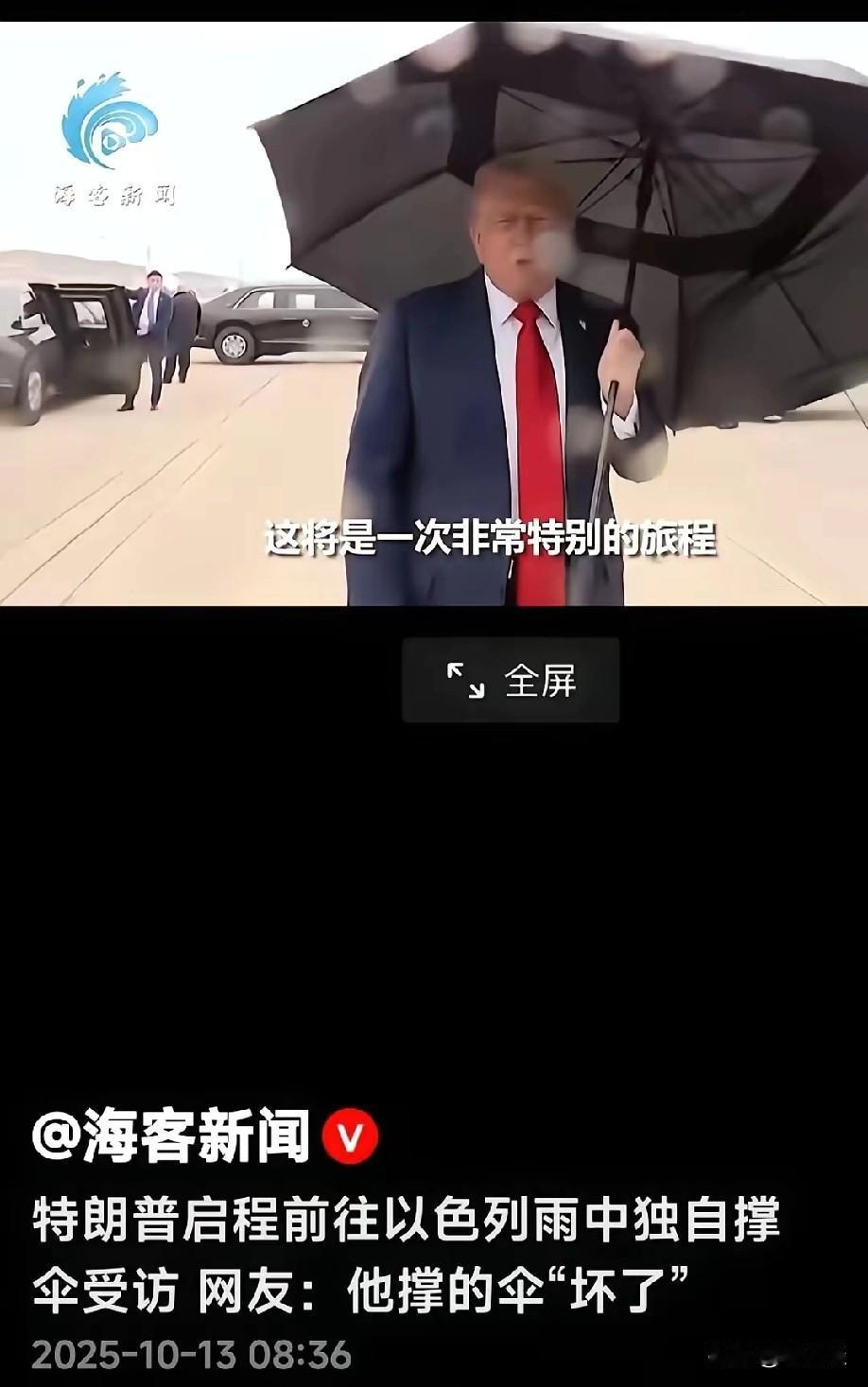 美国真的走向衰落了,堂堂美国总统,居然没有一个随从人员,下雨天还需要自己打把伞,在风雨中艰难的步履蹒跚!特朗普心中肯定涌起了无数个国骂。作为堂堂的一国,而且是世界最强国的最高领袖,到小弟家去探望小弟,居然没有一个人接机,而且下雨天还没有人过来打伞,换成谁能不气呢!