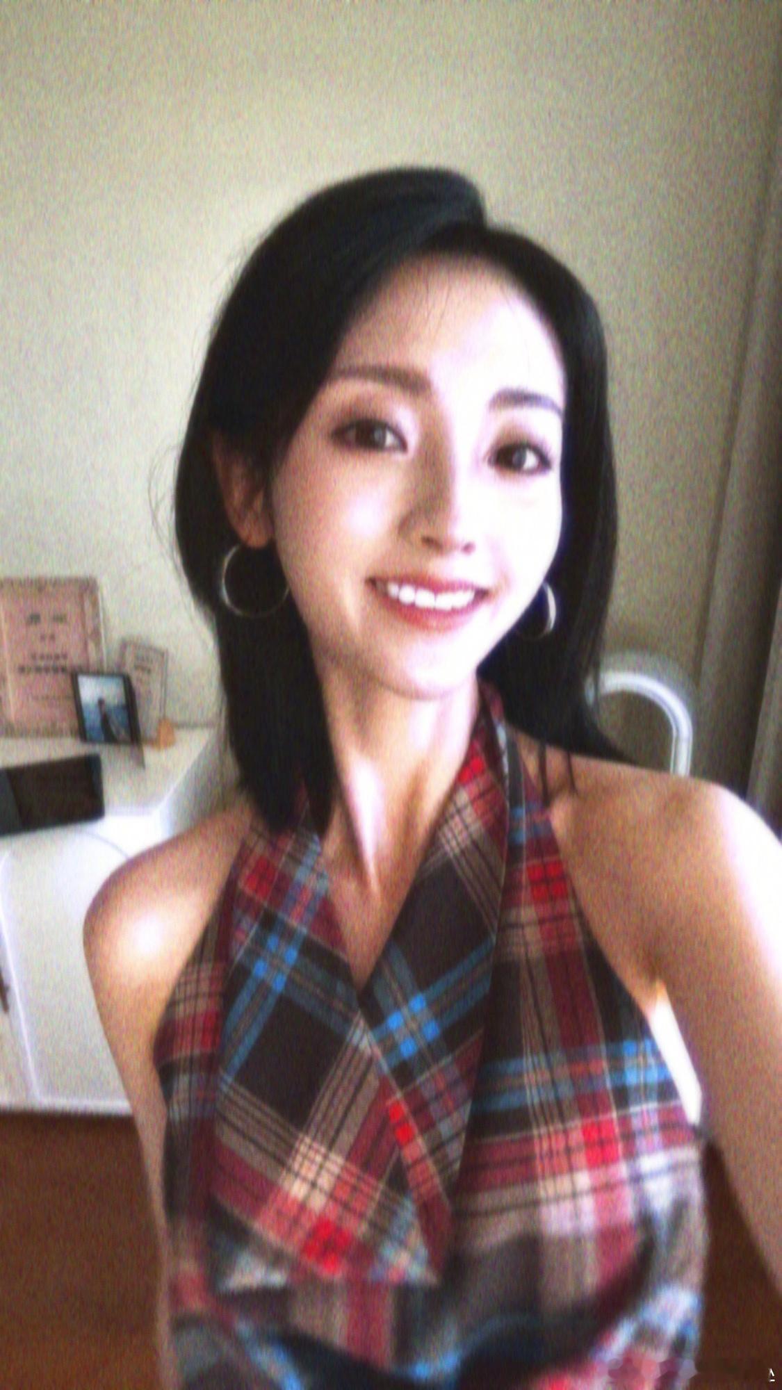 张天爱跟素人合影,胯真的好宽,大宅院似的