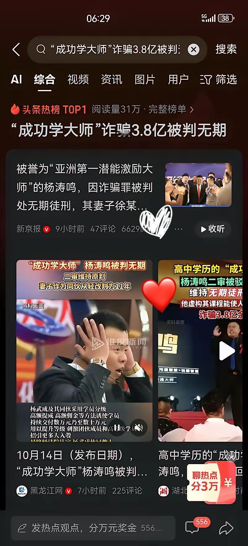 成功了吗?成功了,刚进去,无期!7年骗3.8亿,哪是啥“潜能大师”,分明是抓准人心的“收割老手”。高中学历的杨涛鸣,靠九手劳斯莱斯摆拍、P明星合影装大佬,680元的入门课钓钩子,一步步骗到60万的私教课,甚至卖“带能量的头发”敢喊6万。 别光骂套路狠,其实他踩中了最致命的软肋——大家都想走成功捷径。中小企业主想救生意,年轻人想快速翻身,被封闭会场的音乐、凌晨授课磨掉理智,再被“不交钱就是放弃自己”的话术逼得刷信用卡、借高利贷。更坑的是40%的拉人头返佣,让受害者为了止损成了帮凶,把亲戚朋友也拉下水。 这事儿根本不是“大师”多能忽悠,是焦虑让我们主动闭了眼。记住,真正的成功从不会明码标价,那些喊着“帮你快速逆袭”的,多半是想逆袭你的钱包。