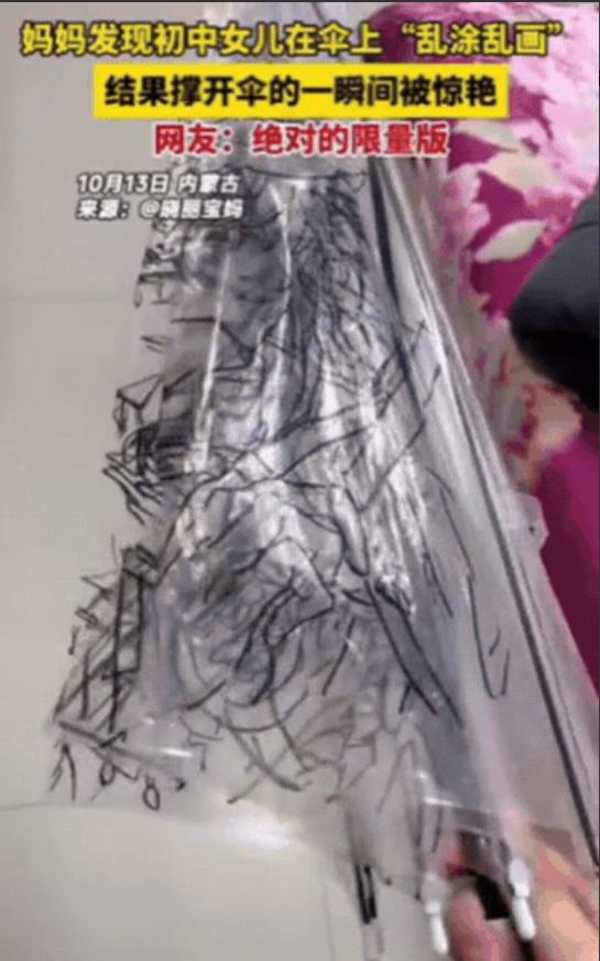 内蒙古,妈妈发现初中女儿,竟然在伞上“鬼画符”,刚准备呵斥,结果当她撑开伞后,瞬