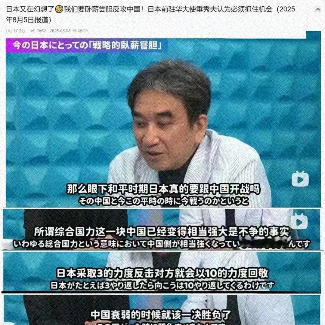 日本驻华大使垂秀夫在面向日本媒体表示,中国强盛时要忍耐,中国衰落时,再给予中国致命一击。看来日本这个民族骨子充满了侵略的本性。有狼的凶残,还有蛇的阴险。对于这样的一个邻居,不但要时刻保持警惕,还要在关键时刻对其绝不手软,发起致命一击。 这话像一记闷雷,砸在了中日关系的神经上,现任日本驻华大使垂秀夫在日本媒体面前堂而皇之说出,没有打马虎眼,也没有任何修饰,直白到让人不寒而栗。 这不是一句外交辞令,而更像是一种战略宣言,甚至可以说,是对中国的一种赤裸裸的敌意预警。 消息一出,立刻在中日舆论场引发强烈震动。 中国国内不少网友第一时间反应是两个字:警惕。 毕竟,这是一个与中国关系密切、经贸合作体量巨大的邻国驻华大使作出的表态,不是什么无关痛痒的外交花絮。 而日本官方并未对该言论作出澄清或否认,问题来了:这种言论,是外交失礼,还是战略本能? 中日两国经济往来密切,2022年双边贸易额约3000亿美元,日本对中国市场的依赖并不小。 但从垂秀夫的表态看,日本似乎从未真正把中国视为可以“共赢”的伙伴,而是一种潜在的“战略对手”。 这就让人想起历史上日本惯用的“大陆政策”——在表面经营关系的同时,背后悄悄布局,等待对方疲软时一击致命。 这种“趁你病,要你命”的战略思维,从明治维新时期起就贯穿了日本的国家行为。 日本在外交上长期存在“表面友好,内里冷酷”的两面性,这种态度,在垂秀夫的言论中展现得淋漓尽致:一旦中国出现内外动荡,日本就准备“坐收渔利”,甚至“补上一刀”。 这不是普通的外交分歧,而是一种深层次的战略敌意,其背后隐藏着对中国崛起深深的不安与目标明确的遏制意图。 如果说一句“致命一击”能引来那么大的反应,那是因为历史从未真正过去。 二战时期,日本在中国发动全面战争,其中南京大屠杀造成约30万人死亡,这是中国人永远无法抹去的集体记忆。 这种“狼的凶残”和“蛇的阴险”,早已烙印在我们对日本战略思维的认知中。 垂秀夫的言论,无疑是对这种历史逻辑的再一次呼应,他没有说出“战争”两个字,但“致命一击”这四个字,足以让人联想到过去那段血与火的历史。 日本政界近年来右翼势力明显抬头,修宪、扩军、加强日美军事同盟、在亚太地区寻求更多“存在感”,这些动作背后的逻辑,就是对中国崛起的战略恐慌。 垂秀夫的表态,不仅仅是外交上的不当言论,更像是日本某些政治力量的真实写照。 他们或许嘴上说着“和平发展”,心里却早已在盘算“等你累了,我就动手”。 在国际媒体看来,这番言论无疑是一颗“定时炸弹”,这种“零和博弈”的表态只会加剧地区紧张,对中日关系带来长期伤害。 而日本国内媒体则普遍选择低调处理,如《朝日新闻》仅以简短篇幅报道,没有深入评论,这种“低调”本身就是一种回避现实的态度。 反观中国,明确指出这番言论是不折不扣的挑衅,呼吁中国公众警醒、政府坚决应对。 在全球局势日趋复杂的当下,任何一个国家的战略误判,都会带来巨大的连锁反应。 2023年全球和平指数显示,亚太地区面临的安全挑战持续上升,中国国防预算年增约7%,本质上就是一种应对不确定风险的主动防御。 从这个角度看,垂秀夫的“致命一击”言论,不只是外交问题,更是区域安全的警钟。 面对这种“等你虚弱时下手”的敌意,中国的应对也不复杂:不幻想、不懈怠、不手软。 近年来,从国产大飞机C919起飞、到5G技术全球领先,再到人工智能领域的快速突破,中国在多个战略领域不断提升硬实力。 中国在高端制造、芯片、航天、新能源等关键领域的自主能力不断增强,正在逐步摆脱外部技术依赖。 安全上,中国国防白皮书指出,近年来海军舰艇数量持续增长,整体防卫体系日益现代化。 经济方面,2023年中国GDP增速约5%,在全球大国中依然保持领先。 这些都不是偶然,而是有备而来。 面对类似垂秀夫这样的“战略算计派”,中国需要的不是义愤填膺,而是冷静自强,让所谓的“致命一击”根本无从下手。 保持警惕不是恐慌,而是智慧;保持自强不是孤立,而是安全。 垂秀夫的这番话,像是掀开了一层遮羞布,我们看清了日本部分政界仍旧根深蒂固的“欺软怕硬”思维,也更加明确了自身要走的路。 这个世界,谁也不会给你机会,除了你自己争来的,中国的强大,既是对外的震慑,也是对内的安全感。 面对这样的邻居,我们不能掉以轻心,但也无需恐慌,只要我们挺直腰杆,谁来都得掂量掂量。 信息来源:光明网