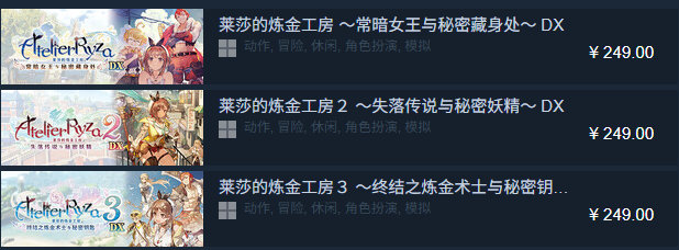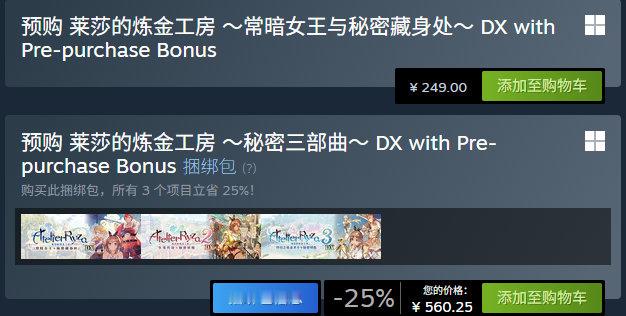 《莱莎的炼金工房》DX版已开启预购,游戏将于11月13日登陆Steam /PS5/PS4/NS2/NS平台,支持中文。Steam平台每部DX版售价均为249元,包含三部作品DX版的同捆包售价560.25元,将追加全新故事及可游玩角色等要素。