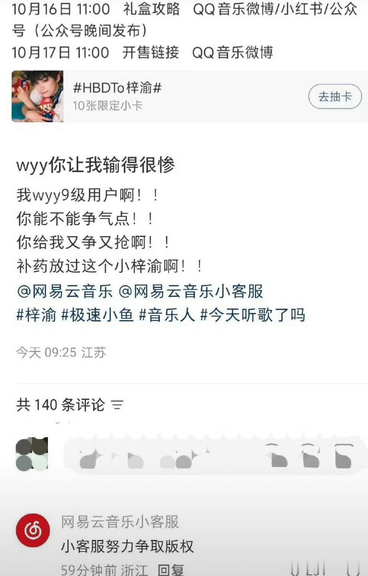 结果网易云那边也要争取梓渝的版权哈哈哈哈