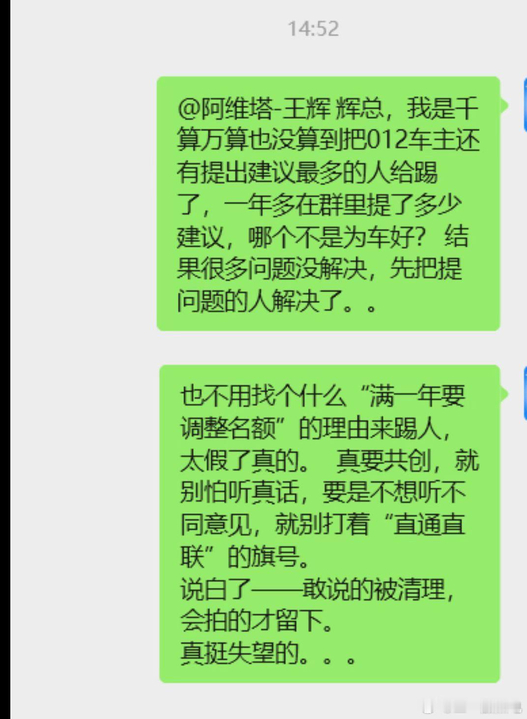 看朋友圈,阿维塔居然把微博上为数不多的koc给踢出高管和用户沟通群了[允悲]