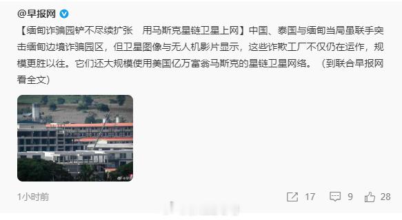 早报网:中国、泰国与缅甸当局虽联手突击,但卫星图像与无人机影片显示,这些诈欺工厂不仅仍在运作,规模更胜以往。它们还大规模使用美国亿万富翁马斯克的星链卫星网络。