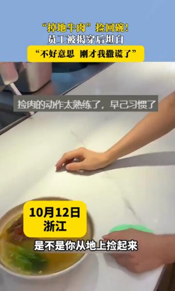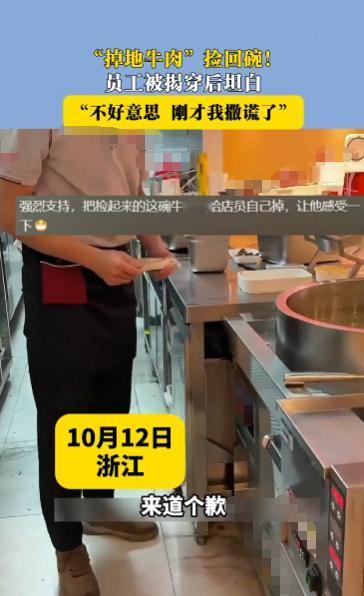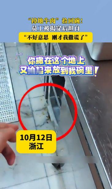 “太缺德了!”10月12日,浙江,一男子取餐时,看到店员竟然将掉在地上的牛肉捡起