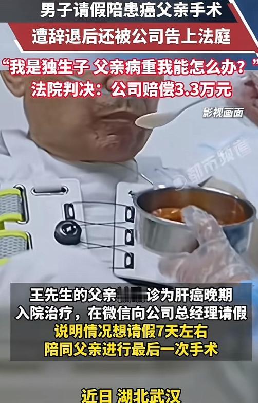 10月14日报道,湖北武汉,男子发信息向领导请假7天,陪患癌的父亲做手术,后见领导没有回复,又给领导打了个电话。结果陪父亲做完手术,返岗后却被公司以“未经批准无故旷工”为由开除。男子懵了,与公司理论未果,一怒之下与公司对簿公堂。     “我是独生子,父亲病重我能怎么办?”     王先生(化名)是武汉一家建筑公司的采购专员,干活认真,几乎没请过假。     平时项目一多,他连周末都常常加班,连年假都舍不得休。     2024年,家里突然传来噩耗,父亲在医院被查出胃癌晚期。     医生在病房外一边翻着检查单,一边叮嘱王先生:“手术风险不大,但术后得有人照顾,最好是直系亲属全程陪着,饮食、换药都挺讲究的。”     王先生听得心里一阵发紧,脑子里一片乱。     回到病房,看着父亲靠在病床上,脸色蜡黄、说话都有点喘,王先生心里酸得不行。     他是家里的独生子,照顾父亲的事只能落在自己身上。     那晚回家后,他反复琢磨了一夜,第二天早上就拿起手机,给部门经理发了条很长的微信。     消息里,他把父亲的病情和医院诊断写得明明白白,还说明手术定在下周,申请请假七天。     为了让公司放心,他还特意拍了医院的诊断证明、病历和手术通知单一起发过去。     发完消息后,也不知道是不是经理没看到,打了个电话过去说明情况,电话那头含糊地应了几句,“知道了,先忙你的事吧。”没说批,也没说不批。     王先生心里还是有点不安,怕公司不同意。     但想到父亲马上要进手术室,他也顾不了太多,只能一边安慰父亲,一边等公司回复。     他守在病房外,看着父亲推进手术室。     那几天,他几乎没合过眼。     手术很顺利,父亲总算脱离危险。     等父亲病情稳定后,王先生立刻收拾行李赶回武汉。     他一进办公室就愣住了,办公桌被清空,门禁也刷不开。     再看手机,采购项目群里已经把他踢了出去,群公告还写着:“采购工作由他人接手,王某无故旷工。”     王先生当场傻眼。     当天就找领导理论:“我明明请过假,还打了电话,你们也没说不同意啊?” 可公司人事一脸冷淡:“请假要经过书面审批,没批就是旷工。”     几天后,他收到了公司的“解除劳动关系通知”,理由写得明明白白,“未经请假,擅自旷工”。     王先生心里又气又委屈。     他觉得不能就这么算了,于是申请了劳动仲裁。     仲裁委员会认定公司解雇不合法,要求赔偿他3万多块。     可公司不服,又把他告上了武汉市洪山区法院。     公司那边仍坚持“没批准就是旷工”,态度强硬。     法院审理后给出了明确意见:王先生请假事由合理且紧急,作为独生子陪父亲手术,符合社会常理,也合乎人情。公司既没说明请假流程,也没及时告知不批准,更没在他离岗期间联系确认,显然缺乏人文关怀。     最终,法院判公司违法解除劳动合同,必须赔偿王先生3.3万余元。     公司不服上诉,二审仍维持原判。     拿到判决书那天,王先生心里百感交集。     他说:“钱倒是小事,主要是想给自己个交代。”     从那以后,他对“公司文化”这四个字有了新的理解:“制度是死的,人是活的。”     类似的事,其实不少。   北京就有个汪女士,因为父亲脑瘤手术请假被辞退,最后法院也判公司赔4万元。     律师解释,法律上确实没明确规定“陪护父母”必须批假,但只要事由合理,公司若一味死扣规章,不仅不近人情,还可能违法。     他也提醒打工人:如果遇到类似情况,别怕麻烦。请假最好留下文字或语音记录,保存病历等证明。真要闹到仲裁或法庭,这些都是关键证据。     而对企业来说,这事同样是个教训,管人可以严格,但别冷漠。     毕竟员工不是机器,谁家没点急事?容人一步,有时候就是留住人心。     对此你怎么看?     信源:河南都市频道