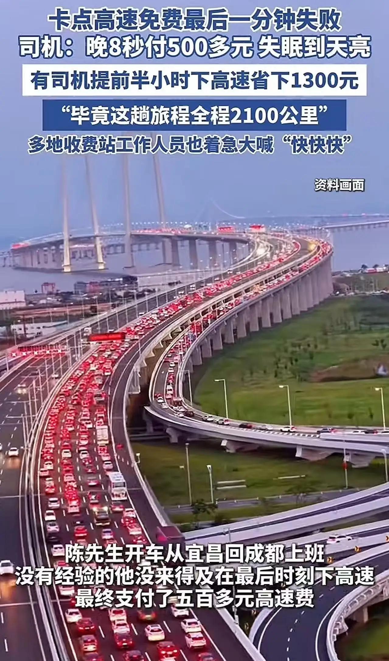 国庆长假即将结束,最后一刻的高速免费大战再次成为焦点。有人欢喜有人愁,一位男子因为“迟到”8秒,错失了免费通行的机会,竟然被收取了500多元的通行费。这一幕,让无数网友都忍不住叹息:这真是“差一点点”的遗憾,也是“经验不足”的教训。 事情的经过很简单:男子在返程高峰的最后几分钟,赶在截止时间前想冲一把“免费”的优惠。可是,令人震惊的是,他竟然在支付界面上迟了8秒,系统自动判定他未能在规定时间内完成支付,于是收费变成了全额。那一刻,他的心情从期待变成了失落,从轻松变成了焦虑。结果,花了500多元,却失去了原本只需几块钱的“免费通行”资格。 很多人看到这里,第一反应是:这也太不走运了吧!但细想一下,背后其实隐藏着更深的人性和社会现象。我们在高速公路上,奔波在时间的夹缝中,似乎总在与“时间赛跑”。这场“免费大战”,不仅仅是一次交通优惠,更像是一场人生的缩影——你有没有准备好,把握住那“最后一秒”? 更令人心疼的是,这位男子说:“两天工资没了,心疼了一宿没睡着。”这句话让人感受到普通人的无奈与焦虑。我们每个人都曾在生活的某个角落,拼尽全力只为那一点点的“幸运”,但偏偏命运就喜欢和我们开玩笑。那一夜,他辗转反侧,回想起自己是不是太疏忽了,是否可以提前规划一下时间,避免“差点儿”的遗憾。 而网友们的评论也五花八门:“一看就是没经验,早点下高速再上就行了。”“这就是‘临时抱佛脚’的下场。”有人调侃,有人叹息,但都在反思:我们是不是太依赖“临时抱佛脚”?是不是应该提前规划,减少那种“差一点”的遗憾? 其实,这个故事告诉我们:生活中没有绝对的幸运,只有提前的准备和冷静的判断。就像这位男子,只要提前一点点,或许就能避开这场“经济损失”。但更重要的是,我们从中看到的,是面对困难时那份不屈不挠的精神——即使失败了,也要勇敢面对,下一次更有经验。