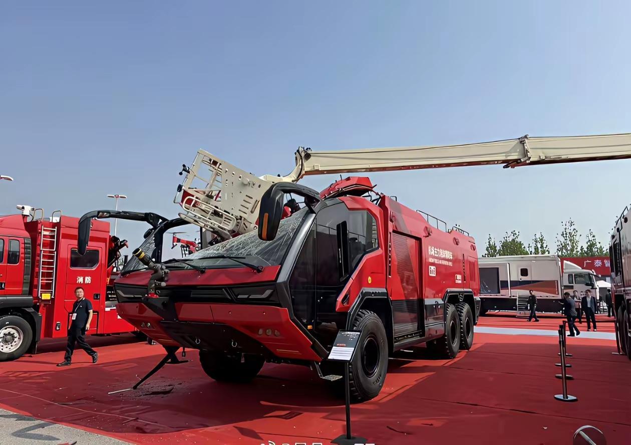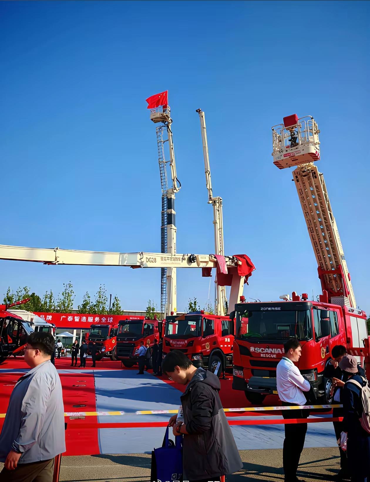 这下在公众场合,丢大脸了。 在中国的国际消防展会上,一台消防登高车出意外了,吊