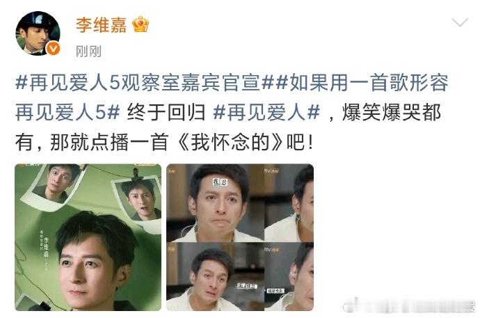 李维嘉点播一首我怀念的李维嘉再见爱人5回归李维嘉点播《我怀念的》引爆回忆!官宣回归《再见爱人 5》,观察室铁三角终于重聚。