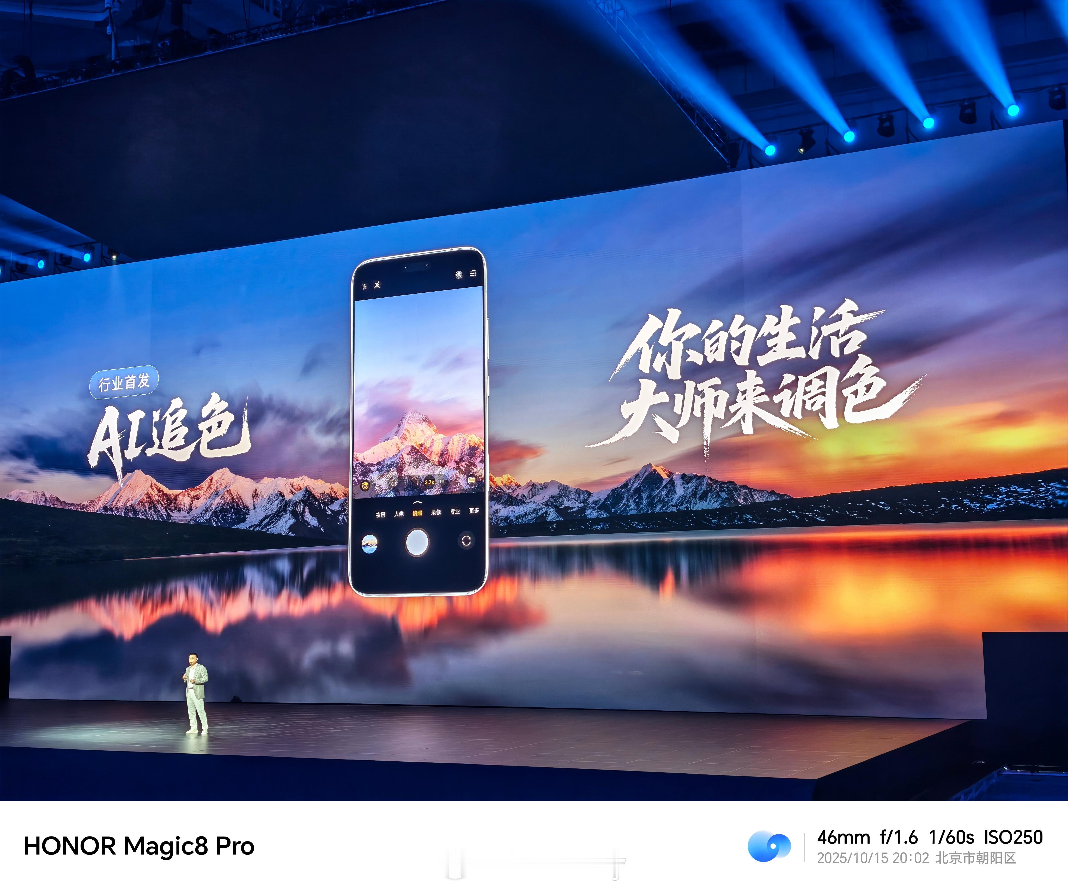 而且还有AI追色功能,大师调色精准匹配,拍摄效果更到位,这个功能确实好,我在十一假期也用上咯。荣耀发布会