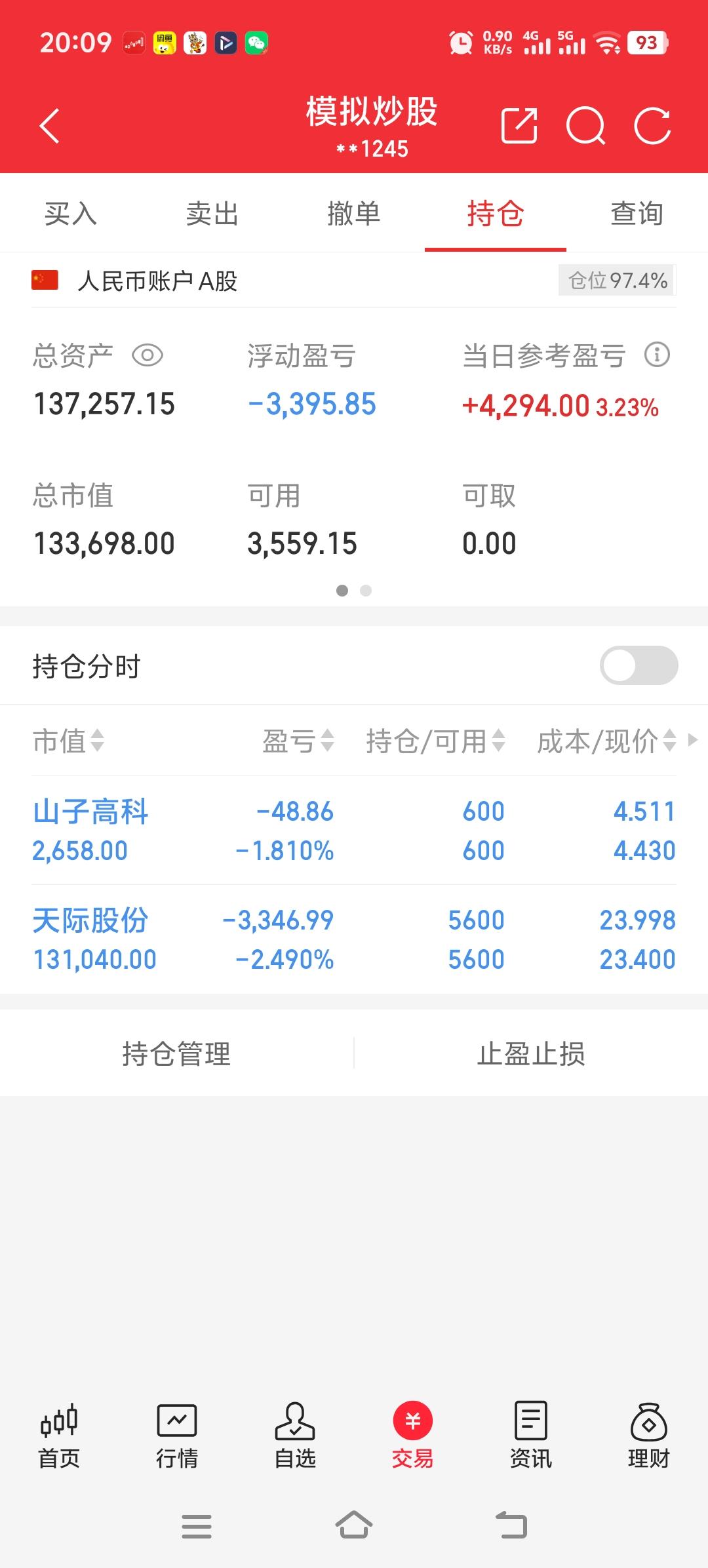 市场全天震荡走强,沪指重返3900点上方。机器人 概念股走强,三花智控 、五洲新春 等多股涨停。创新药板块拉升,昂利康 、联环药业 等封板。汽车整车股大涨,中通客车 、海马汽车 涨停。数据中心电源概念活跃,和顺电气 、金盘科技 等封板。光刻机概念股延续调整,新莱应材 跌超10%。板块概念方面,机器人、创新药、汽车整车、智能电网等涨幅居前,航运港口、农业、光刻机、稀土永磁等逆势下跌。 两市共4120只个股上涨,95只个股涨幅超过10%,892只个股下跌,9只个股跌幅超过10%,14只股票炸板,炸板率16%,今日成交2.09万亿,收盘沪指涨1.22%,深成指涨1.73%,创业板指 涨2.36%。附上模拟盘,减少操作。