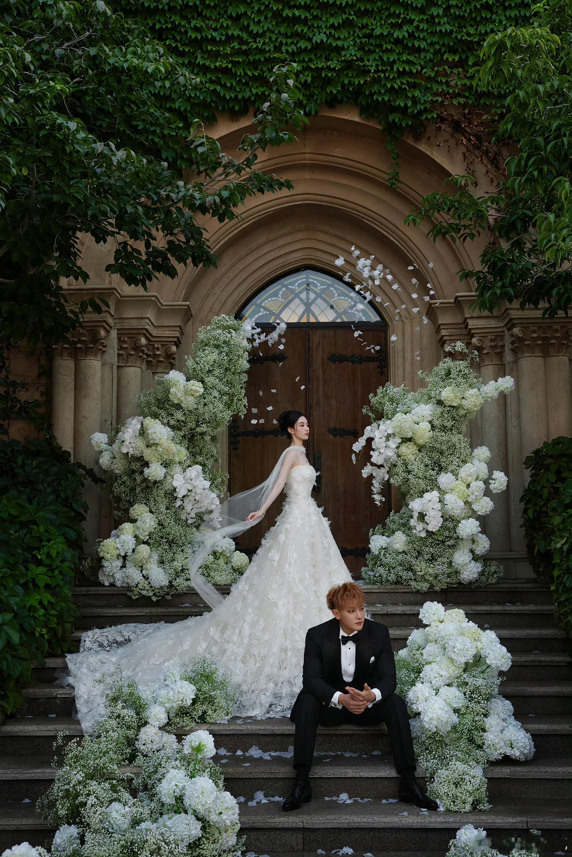 黄子韬徐艺洋接吻婚纱照今天我们相聚在这里是为了给黄子韬徐艺洋结婚送祝福[送花花]