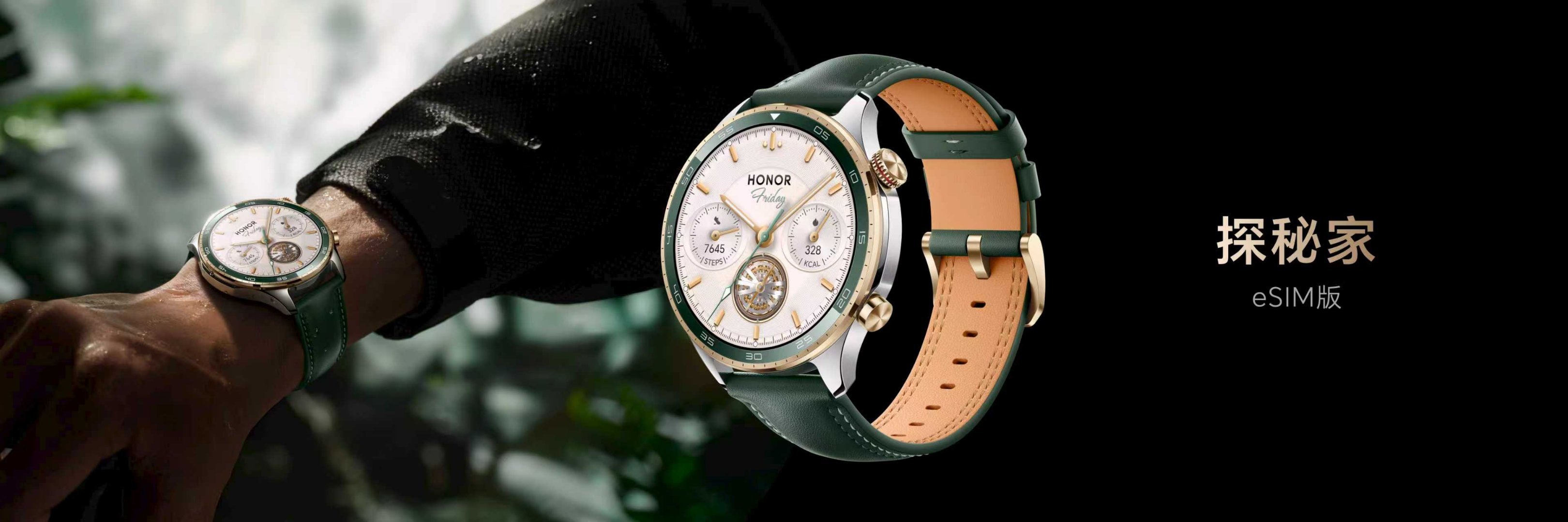 探索无界 时刻同行,荣耀手表5 Pro带来eSIM和蓝牙共5款配色样式,以挑战极境为灵感,致敬人类突破自我、探索未知的精神,传承经典设计中的极致工艺,结合腕表中的经典美学,展现出极致美感与当代科技相互融合的独特魅力。
