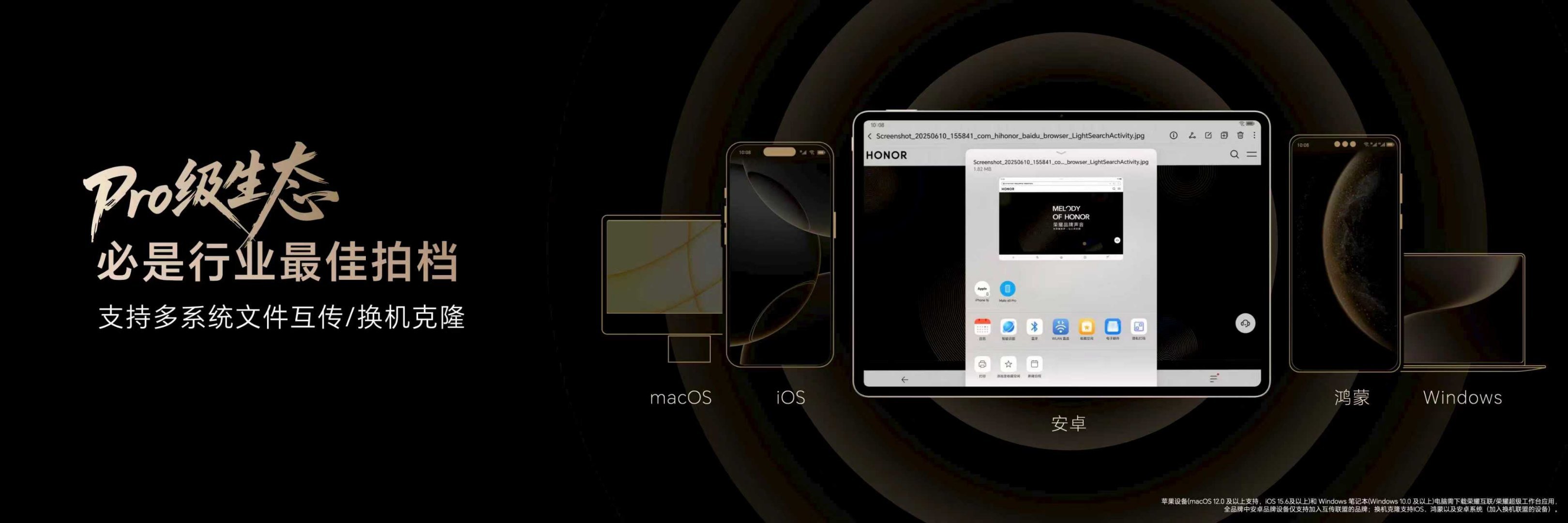 荣耀MagicPad3Pro首发MagicOS 10,必是AI体验天花板!支持iOS、安卓、鸿蒙、Windows、Mac系统的文件互传与换机克隆,一键转换苹果三件套格式,并为iPhone提供23W反向充电,是最佳跨平台拍档,跟谁都很搭。