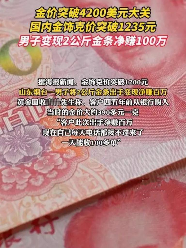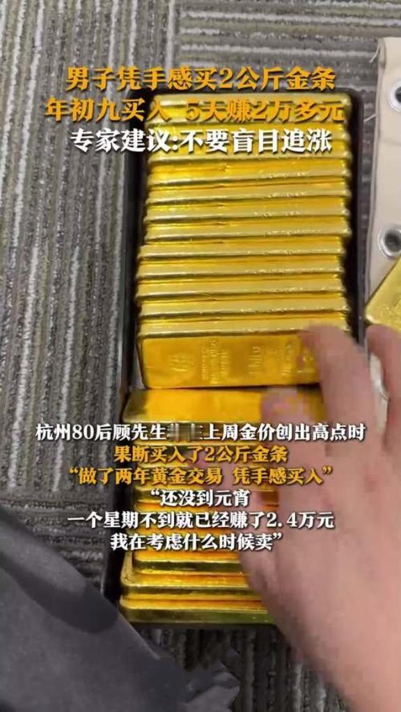 男子手握2公斤金条果断变现,净赚高达100万,令人惊叹!金价波动下,这波操作堪称“神级”投资。你觉得这是运气爆棚,还是投资眼光独到?快来评论区说说,你若手握黄金会如何操作?投资金条金价 金条行情 投资金条 黄金财富金条