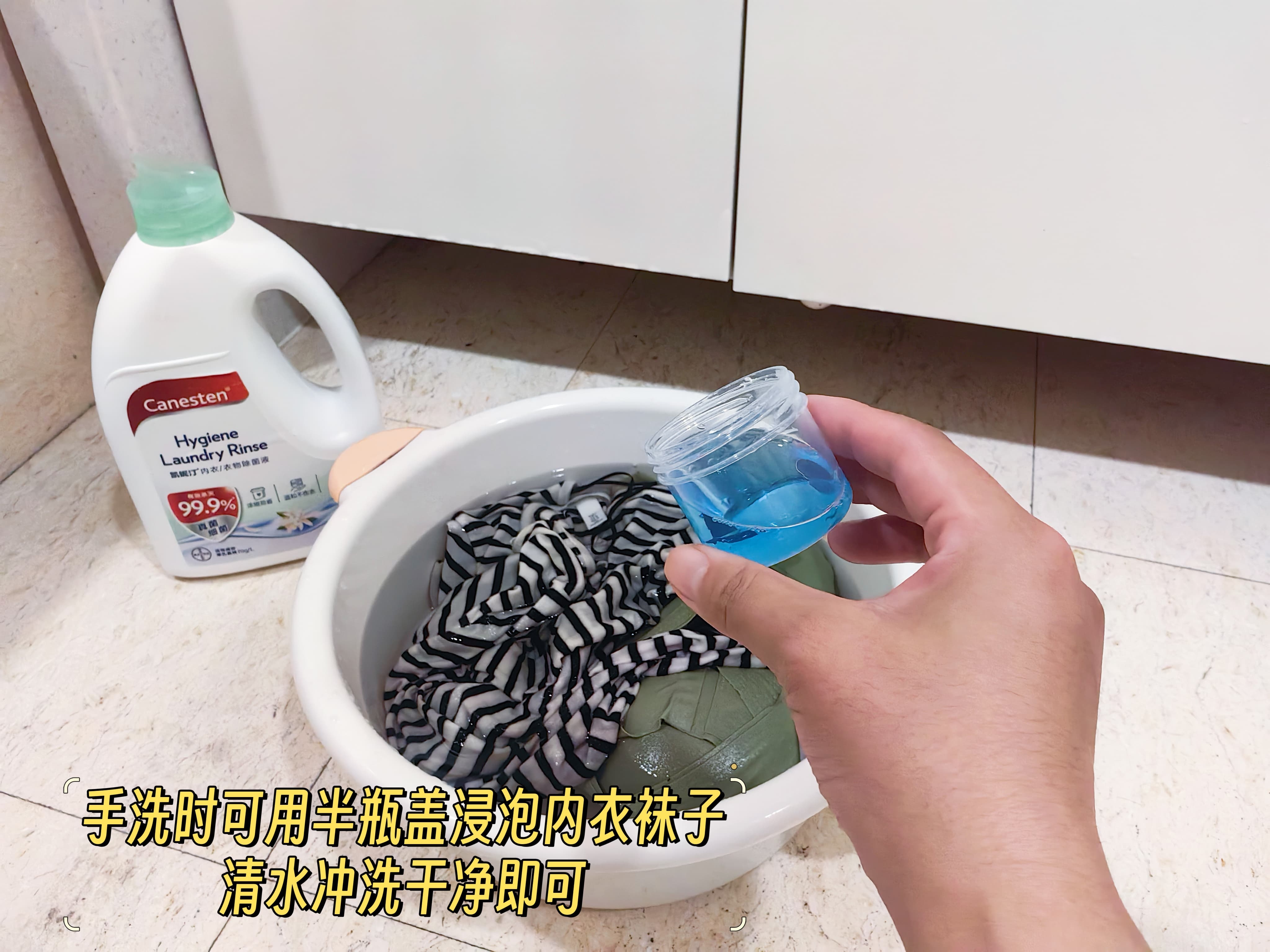 衣物1-5件,用1/4瓶盖,用3L水稀释,