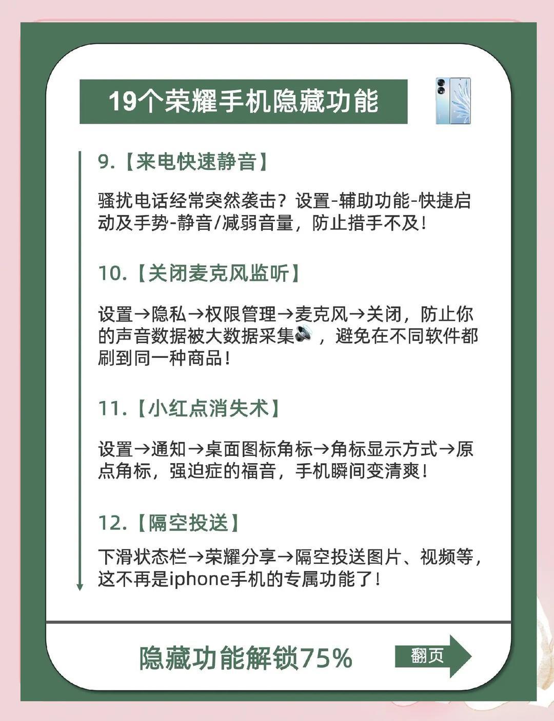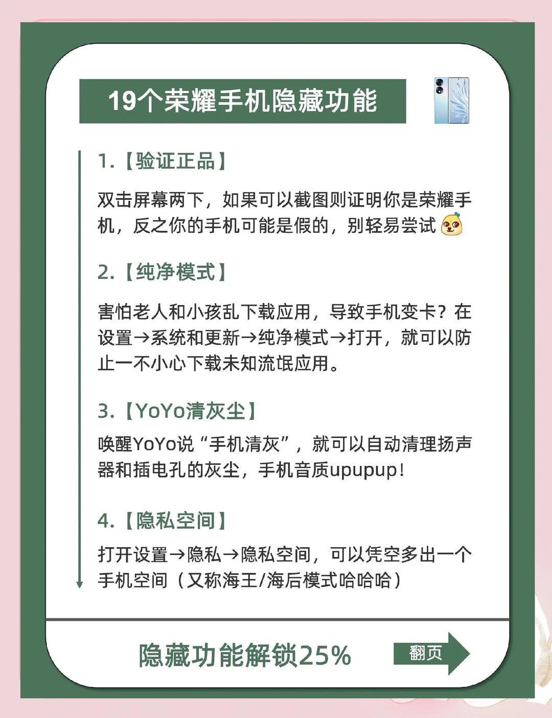 荣耀发布会含金量真高 你们知道吗?其实你们的手机里隐藏了许多实用的小功能。今天就来给大家揭秘这款手机的19个隐藏功能,让你的手机使用体验更上一层楼。