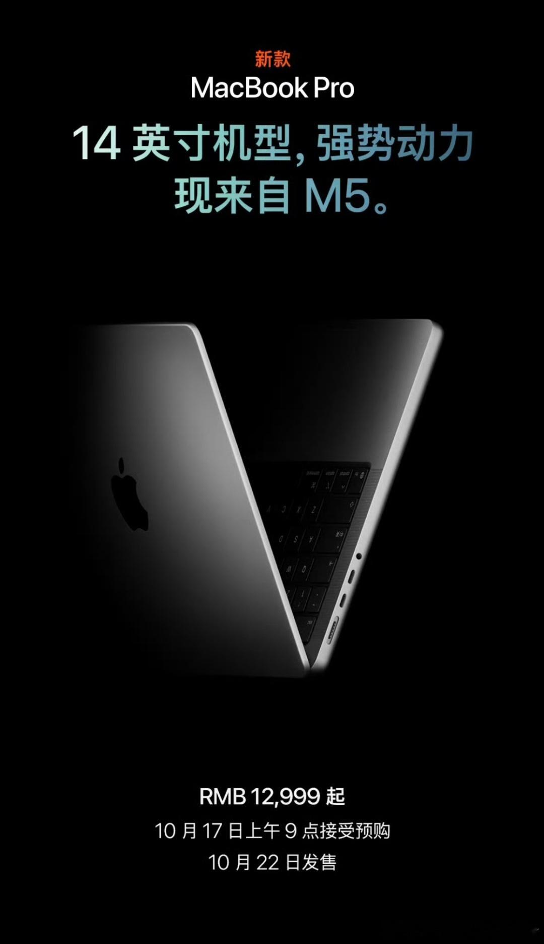 M5芯片苹果今晚发布了三款设备,新款Macbook Pro 14英寸搭载自研M5芯片,国行版12999元起售,这个价格我只能看看了。如果有条件,买来玩玩挺好。