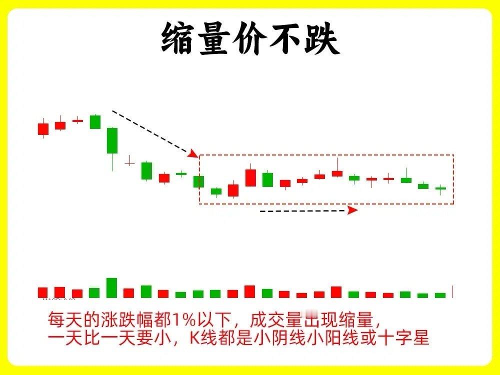 股价经过长时间的下跌,出现阴跌,随后股价开始跌不动了,出现横盘,每天的涨跌幅都1%以下,成交量出现缩量,一天比一天要小,K线都是小阴线小阳线或十字星。市场有一句俗语,地量见地价。股价缩量到极致,市场的抛压已经消耗完。这有一个细节,股价的真缩量,何为真缩量,连续的缩量才算合格,如果是缩量放量缩量放量,不能算真缩量