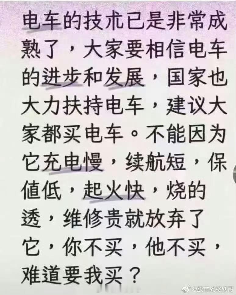 电车技术已经非常成熟了,建议大家都买电车[doge]热点观点