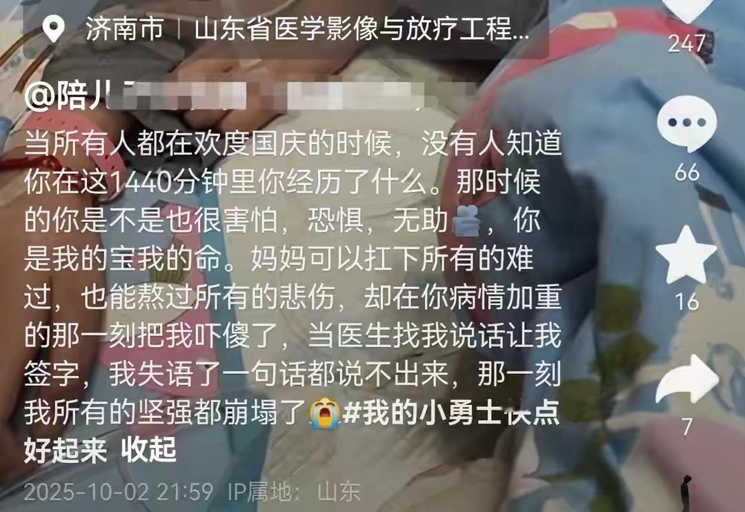 江苏周宇初二学生去世,仅15岁,头痛后确诊,最后抓着妈妈手不放, 江苏初二学生周宇走了,永远停在了15岁的夏天。 起初只是普通头痛,家人以为是学习累的,没太在意。等送到医院确诊,一切都晚了。最后时刻,他攥着妈妈的手不肯放,那双还没来得及看遍世界的眼睛,满是不舍。 一个鲜活的生命突然消失,给所有家长敲了警钟。别总觉得孩子“小毛病忍忍就好”,身体发出的信号从不能忽视。学习再忙,也得把健康放在第一位,毕竟比起成绩单,平平安安长大,才是最要紧的事。 这样的悲剧太让人揪心,只希望周宇在另一个世界没有病痛,也希望更多家庭能记住这个教训。作品声明:内容取材于网络。