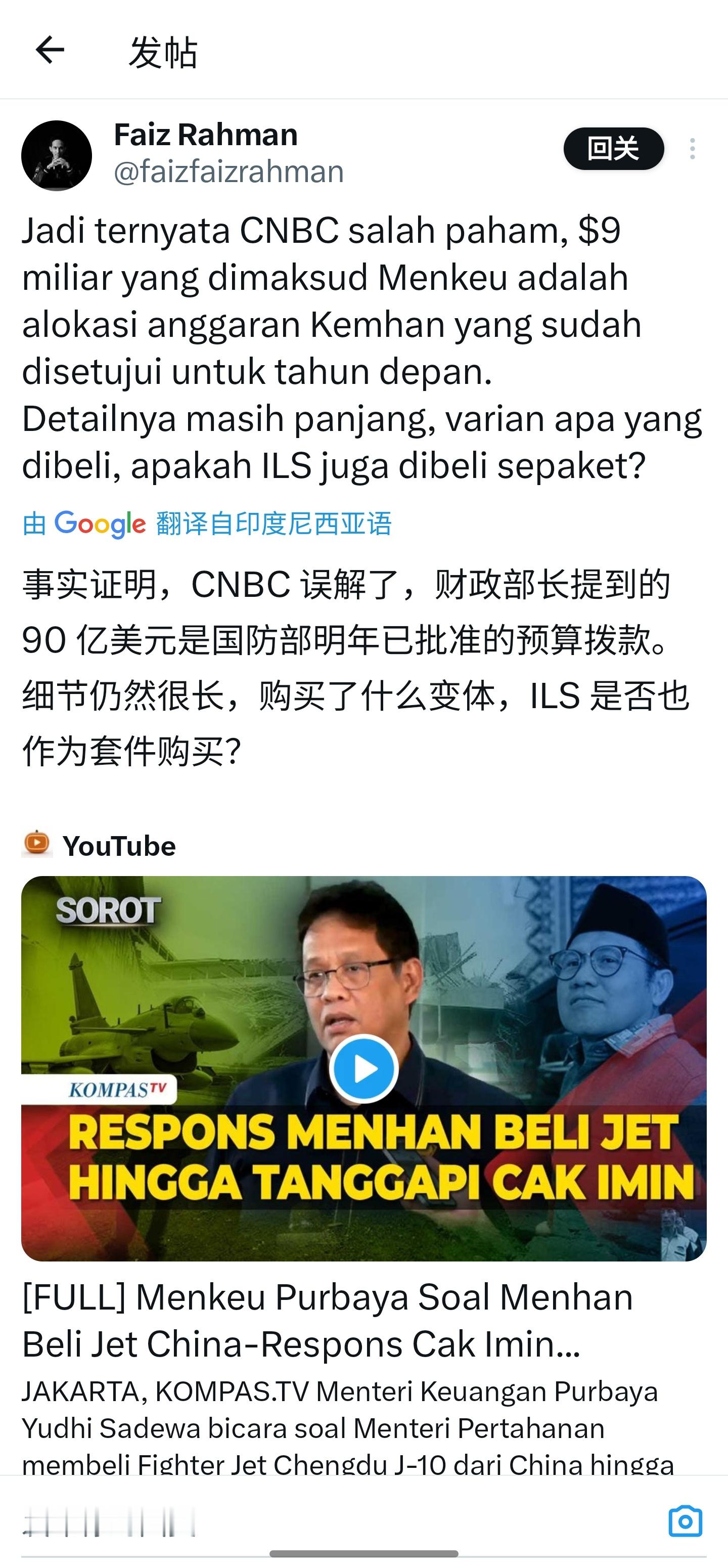 CNBC说印尼花90亿美元采购歼十是误传,印尼财政部长所说的那90亿美元,其实是已经获批的印尼明年国防采购预算额度,根据之前的小道消息:其中16亿美元将用来采购4.5代战斗机,由于印尼采购42 架“阵风”的合同已经生效,这批资金是额外的新预算,所以不是增购“阵风”,而是另外的“四代半战斗机”。印尼考虑购买歼10每天认识一件兵器