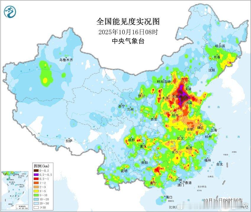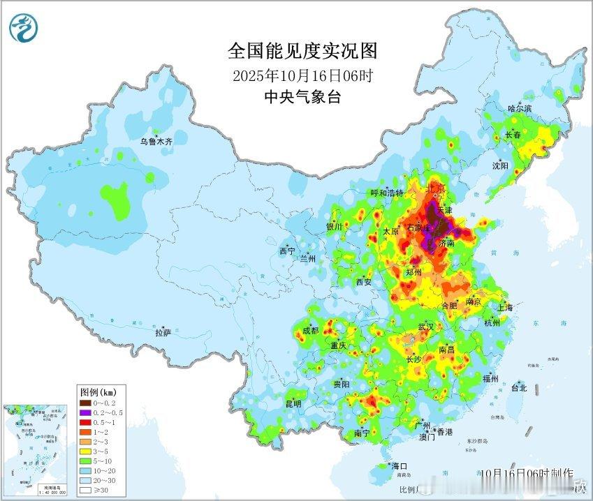【大雾】今晨在河北中南部、山东西北部一带出现大雾,部分站点出现能见度不足200米的强浓雾,局地甚至有能见度不足50米的特强浓雾。比如山东夏津5时能见度只有26米、河北宁晋8时能见度只有48米。