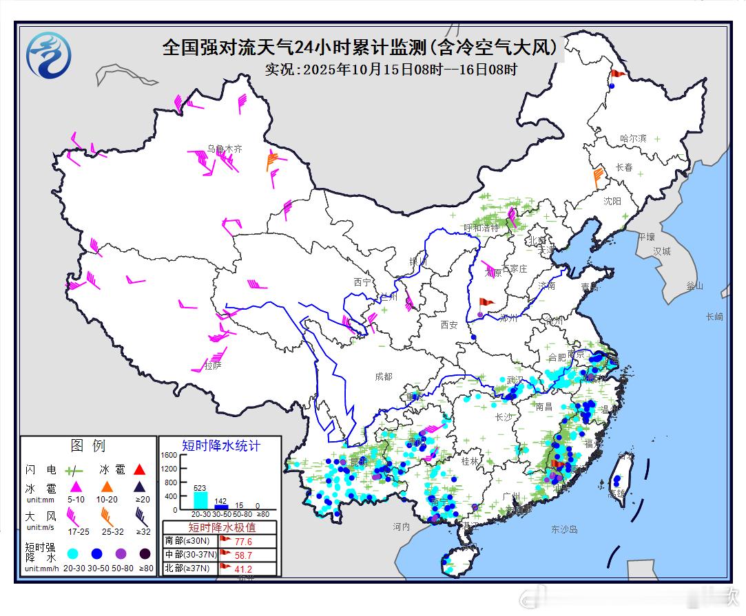 10月16日08时至17日08时,内蒙古东部、西藏东北部、青海东南部、甘肃西南部、川西高原北部等地部分地区有小到中雪或雨夹雪,其中,内蒙古东北部局地有大到暴雪(10~11毫米)。陕西南部、河南南部、湖北北部、四川盆地东北部、重庆北部、云南西南部等地部分地区有大到暴雨,其中,陕西东南部、湖北西北部、四川盆地东北部、重庆东北部等地局地有大暴雨(100~120毫米)。