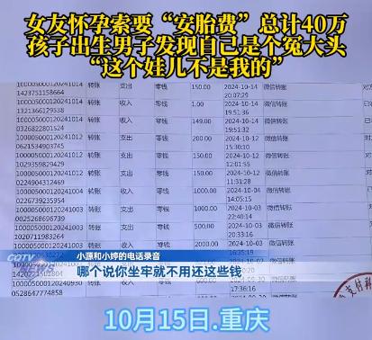 重庆,男子和女子相识恋爱,男子去了外地上班,女子告诉他,自己怀孕了。男子高兴不已,陆陆续续给对方转了40多万保胎费,可最后女子告诉他,胎心停了,孩子没了,男子很难过,跟对方断了联系。可事后他越想越觉得不对劲,查看女子发给他的孕检单,发现蹊跷,顺藤摸瓜,结果发现孩子不是他的,而是另外一个男子的,并且他们一家三口还拍了视频,男子崩溃。 10月15号报道,2023年底的时候,重庆的小源认识了小婷,两人聊得很投缘,慢慢开始了恋爱交往。 转眼到了2024年春节,小源和小婷一起住了几天,假期结束后,小源就得去西藏上班,没办法和小婷待在一起,只能靠手机维持联系。 2024年3月,小婷突然给小源发消息,说自己可能怀孕了。 看到消息的那一刻,小源心里又惊又喜,他从来没想过自己会这么快当爸爸,连着好几天都在琢磨以后的日子,还主动跟小婷说要多注意身体,有需要随时找他。 可没过两个月,小婷又发来消息,语气带着委屈说,小源不在身边没人照顾,她想把孩子打掉。 小源听到这话特别难受,可又没办法立刻回去,只能在电话里安慰小婷。 等小婷说手术做完了,找他要4000块手术费时,他没多想就转了过去。 本以为这事就这么过去了,两人还是像以前一样联系,可慢慢的,小婷开始频繁找小源借钱,今天说要买东西,明天说生活费不够,次数多了,金额也越来越大,小源渐渐觉得有点吃不消。 有一次他犹豫着想要拒绝,小婷却突然说孩子没打掉,现在需要保胎,得花钱。 小源一听孩子还在,,当天就给小婷转了一万多块,还反复叮嘱她一定要好好照顾自己。 从那以后,小婷隔三差五就给小源发孕照,说胎儿长得不稳定,得买保胎药,还说小源家县城的医疗条件不好,想回自己老家保胎,住朋友家方便。 小源觉得小婷是为了孩子好,怎么说都答应,只要小婷提需要钱,他都会想办法凑。 从2024年七月开始,小婷以保胎为由,前前后后从小源那拿了四十多万。 后来她又说要去妹妹家,因为妹妹是医生,能更好地照顾她,小源也没怀疑,依旧按时打钱。 直到有一次,小婷发了张见红的照片,说马上要生了,让小源转一万五交住院费。 小源急得不行,赶紧让父母连夜开车赶过去,老两口开了八个小时的车才到小婷定位的医院,可找了半天都没看见人。 小源给小婷打电话,过了十几分钟,小婷才穿着病号服从外面跑过来。 小源的父母看着她大着肚子,也没多问,帮着办了些手续就离开了。 2024年11月26号,小婷突然告诉小源,因为他没及时拿钱保胎,胎心停了,孩子没了,她已经做了手术。 这个消息像晴天霹雳,小源难受了好长时间,从那以后,两人基本就断了联系。 可日子一天天过去,小源越想越觉得不对劲。 2025年6月,他翻出以前的聊天记录,仔细看小婷发的孕检单,才发现上面的医院标志和名称都被折起来了,根本看不清。 他试着在网上搜了搜,结果发现那些孕检单全是别人发的网图。 他还想起有一张单子上“丈夫”一栏留了个电话,当时他在西藏没在意,以为是小婷的朋友。 这次他抱着试试的心态,用这个电话在社交平台上搜,结果发现一个账号,账号主人就是孩子的亲生父亲,作品里还有他们一家三口抱着孩子的视频。 小源拿着孩子的照片问小婷,这次小婷才终于承认,孩子不是小源的。 小源觉得自己像个傻子,他让小婷返还那四十多万,不然就起诉。 可小婷满不在乎地说,她认账,但没钱还,还说就算坐牢也不用还钱,反而是种解脱。 小源提醒她,坐牢也得还钱,没想到小婷竟然说,大不了自己一直不出来,还威胁小源非要把事闹大的话,她就告小源强奸,说当初发生关系时她喝醉了,是无意识的。 小源又气又急,说当初是双方自愿的,他不怕让人知道,还把两人的聊天记录给记者看。 从记录里能看出来,小婷根本没提过被强迫,反而还说小源不行,还要把这事当笑话告诉姐妹。 后来记者试着联系小婷了解情况,可她一直没接电话,小源说,不管是感情上的纠纷,还是钱的纠纷,他都会通过法律途径解决,不能就这么算了。 在恋爱里,像小源这样因为信任对方而吃亏的人不少。 不是说恋爱不能信任,而是涉及到大额金钱往来时,多留个心眼没坏处。 比如对方说怀孕需要钱,不妨要求看看正规医院的检查报告,或者趁有空的时候当面核实情况,别像小源一样,因为异地就完全没去确认,最后落得人财两空。 还有,平时聊天记录、转账凭证这些,最好都保存好,万一真遇到纠纷,这些都是能帮到自己的证据。