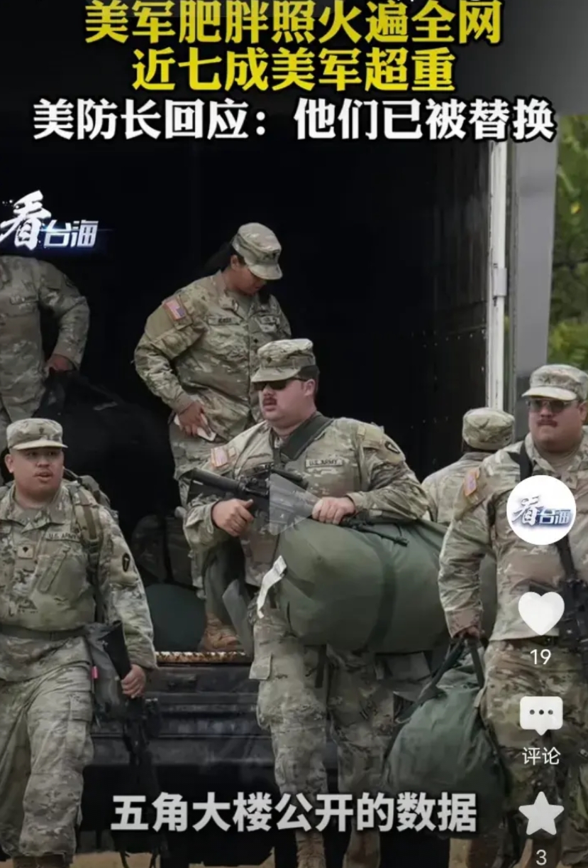 记得以前(二十年前)看过杂志,说美军对体重管理严格,定期体检,只要超重立刻勒令退出现役,哪怕你是将军!