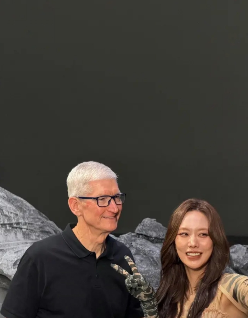 这合照看着就像朋友之间的互动,库克笑得挺开心,王霏霏也很自然,感觉他们之前可能就认识