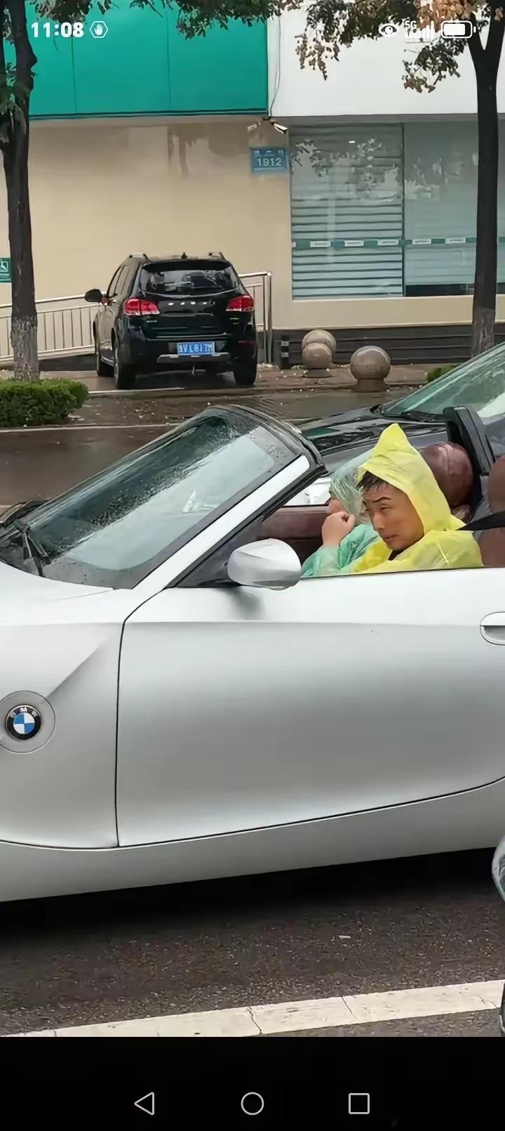 今日深圳好大雨呀,宝马车里都进雨了,还得戴雨衣,这破宝马!我吥!