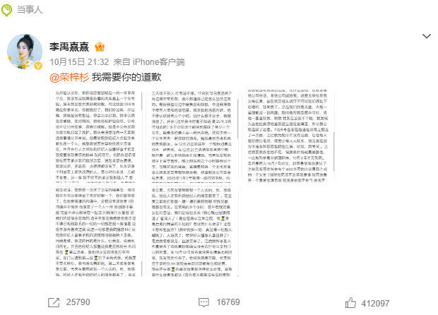 荣梓杉工作室发文辟谣说俩人从未在一起,女方长期跟踪、言语骚扰荣梓杉。不过这条辟谣