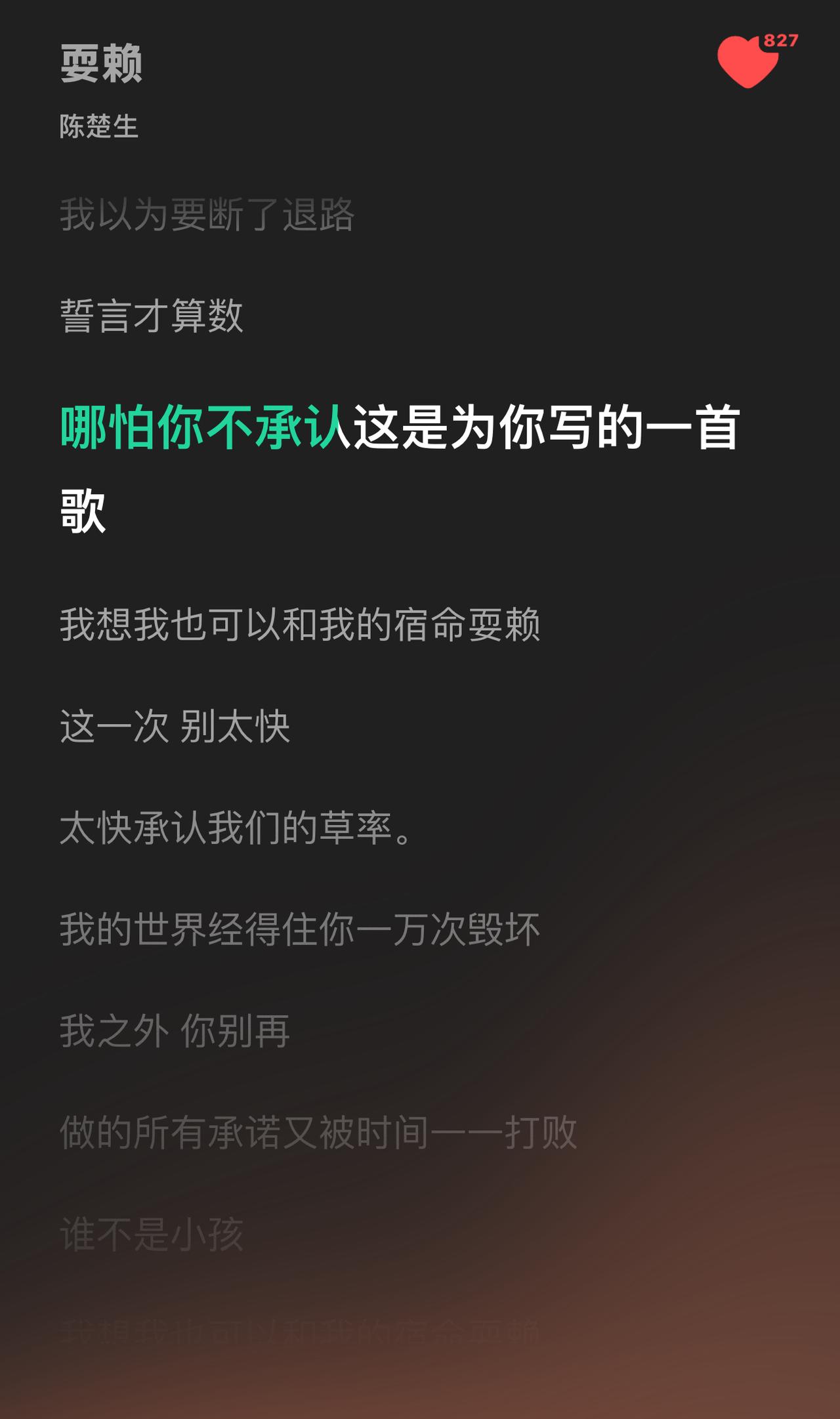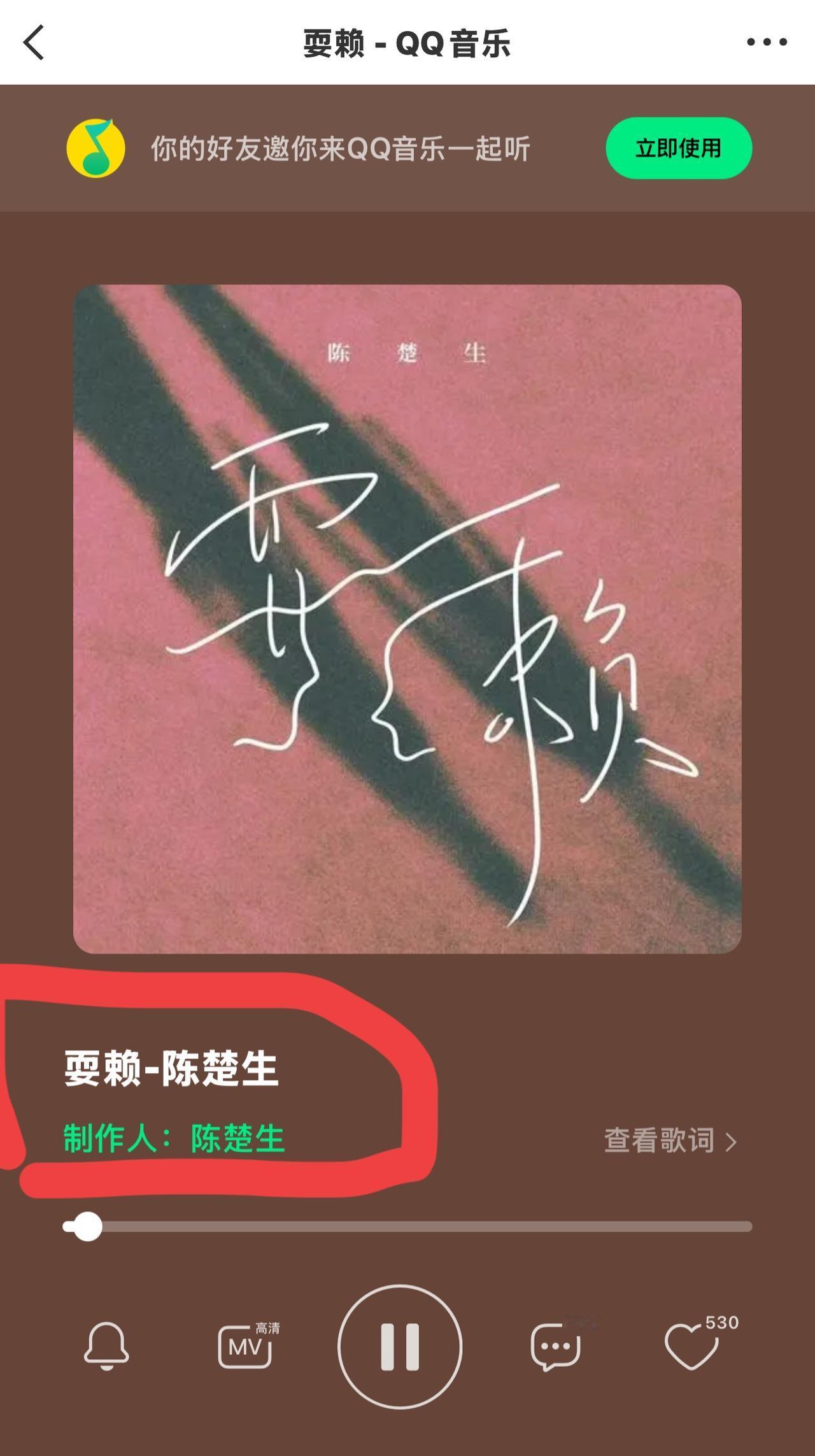 陈楚生的新歌《耍赖》很有轻描淡写的感觉。 是一首适合弹着吉他唱的情歌。 浅吟低唱,娓娓道来,诉说感很强。 好听!声音温润而克制,很有轻描淡写的味道。 这首歌由陈楚生与黄少峰合作完成,陈楚生为制作人(首次)。
