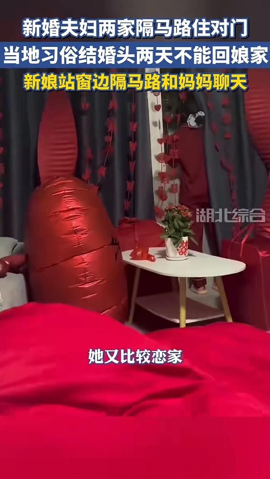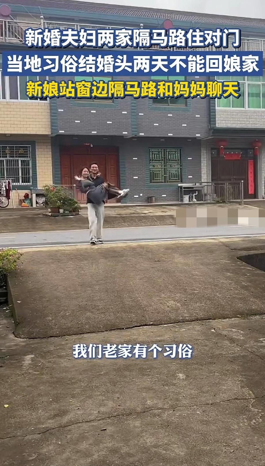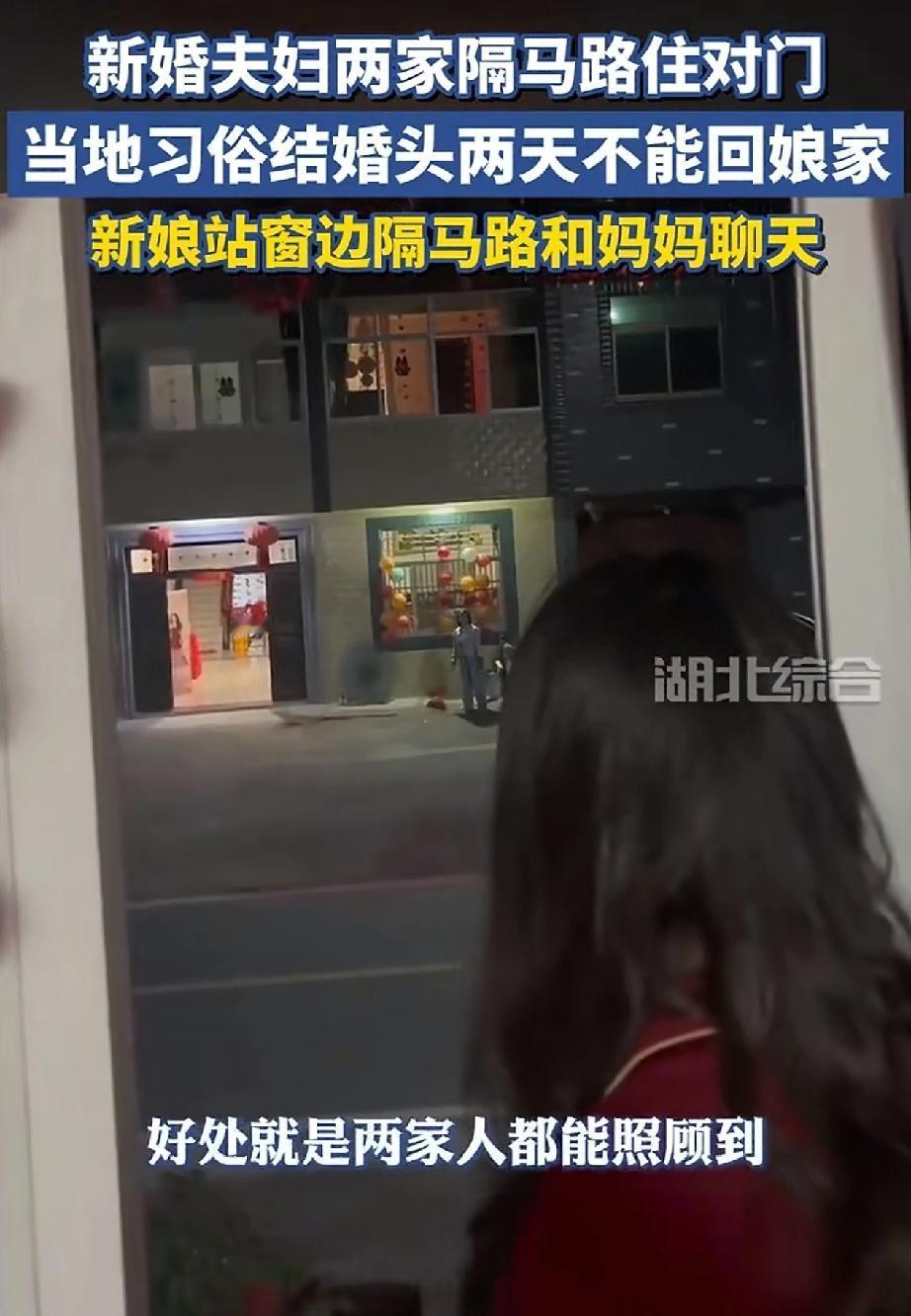 由于当地习俗,刚结婚的新人不能回娘家,但是新娘又很想念妈妈。好在两家相隔不远,每天新娘都会站在窗边,隔着马路与妈妈聊天。 多么幸福的一对儿啊!他们两家只隔着一条马路。在新房子里就可以看见马路对面的娘家。只要妈妈出来站在门口,相隔着的马路也不是问题。不光能聊天 还看见了心心念念的妈妈。 你和娘家的距离远吗?