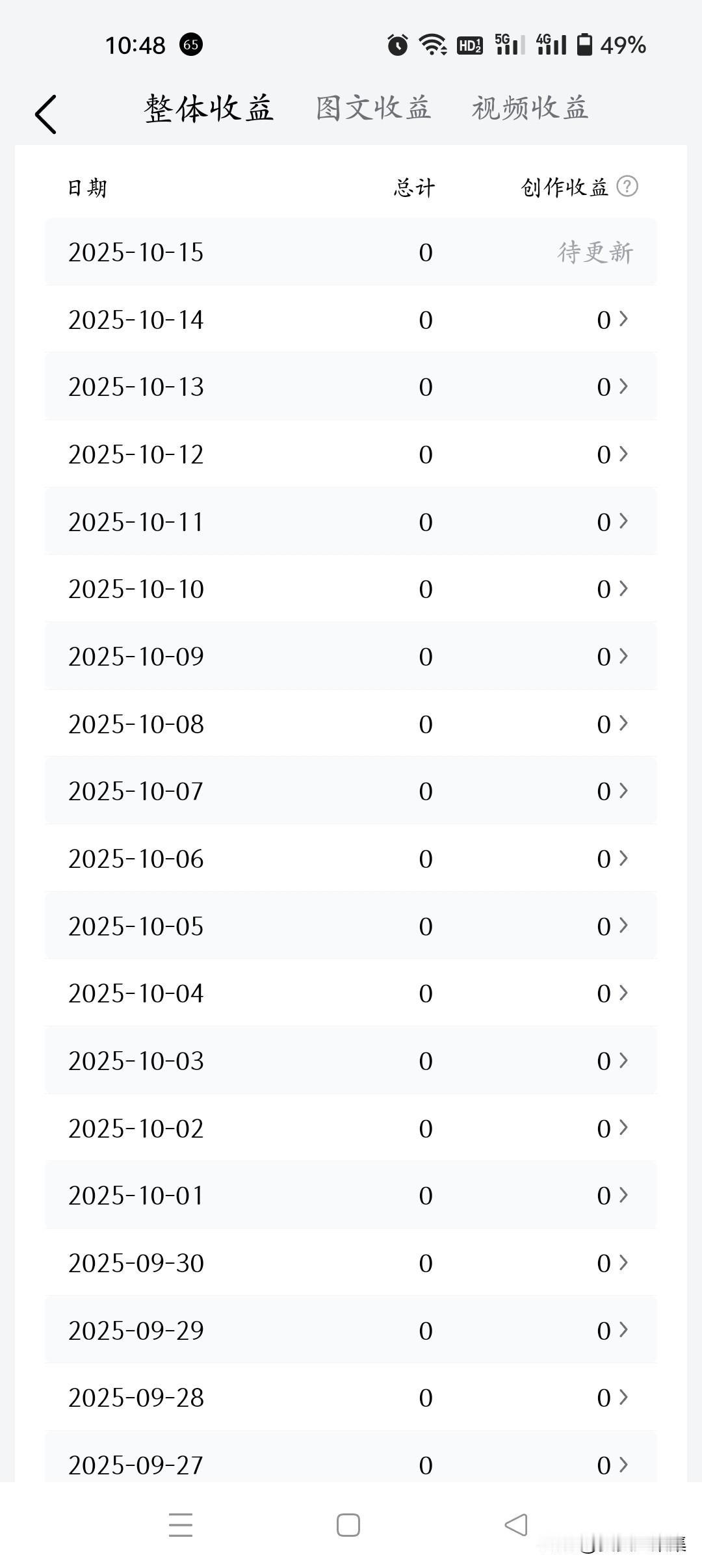 你们每天在头条的收入多少? 我断断续续玩了有两年时间了吧 总收益676, 这段时间好几天都没有上线了 全是大零蛋 怀孕了一天也不知道干什么 随便写点东西