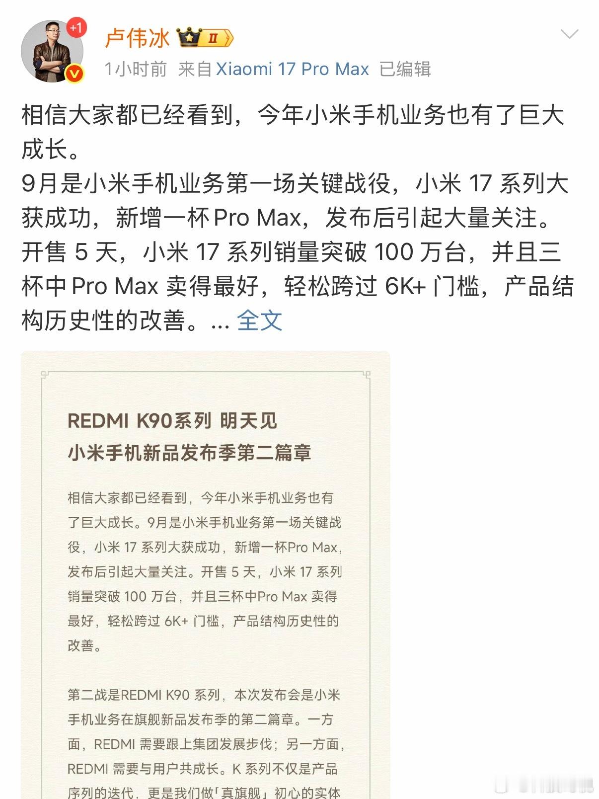 卢伟冰称K90不排斥和小米直接竞争卢总忍了这么多年终于不装了,和小米直接竞争![doge][doge][doge]