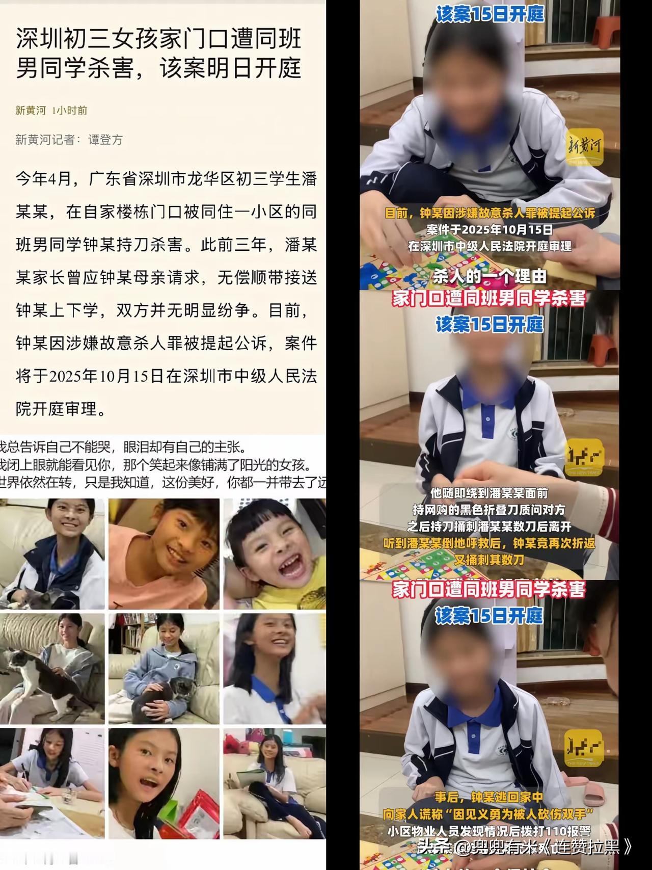 一个人能有多坏,用刀伤害了同学,听到救命后,又去补了几刀,如今在法院跪求女孩妈妈饶命。 接送3年的“白眼狼”连捅20刀,14岁恶魔的下跪,骗得了谁? 真的要被深圳这起案子气到浑身发抖!你能想象吗?好心接送了三年的邻家男孩,竟然在自家楼栋门口,对着14岁的女儿连捅二十多刀,听到“救命”声还折返补刀,直到确认没了气息才罢手。 优优妈妈曾女士到现在都想不通,自己和丈夫轮流接送钟某某近三年,连他姐姐都顺带接了一年,平时见面他嘴甜喊着“叔叔阿姨”,怎么就藏着这么颗毒心?这个才14岁的少年,早在作案前就把算盘打得清清楚楚:搜“14岁杀人要判几年”,查“无色无味的毒药”,连捅脖子能不能致命都摸得门清。 他哪是一时冲动?分明是蓄谋已久的屠杀。动机说出来更让人窒息,不过是嫉妒优优成绩好、家庭和睦,觉得对方“看不起自己”,再加点鸡毛蒜皮的琐事不满。优优倒在血泊里的时候,正盼着回家吃爸爸做的饭,还等着中考后去新疆旅行,可这些期待全被一把刀戳碎了[__LINK_ICON]。 更讽刺的是案发后,钟某某回家对着父母撒谎,说自己“见义勇为被砍伤双手”,他爸妈居然还在小区群里帮着造势[__LINK_ICON]。整整半年,这家人别说赔罪,连句真心的道歉都没有,直到法庭上才不情不愿地说声“对不起”。 庭审时的戏码更让人恶心。钟某某一开始压根没当回事,还抱怨看守所生活苦,想回学校读书。直到优优家属强烈要求严惩,他才突然“扑通”跪下磕头求饶。可这一跪,能换回被捅穿的心脏吗?能让白了头的妈妈再抱一次女儿吗? 最让人脊背发凉的,是他对“未成年”标签的算计。他清清楚楚知道法律对未成年人的宽容,把这当成了作恶的“免罪金牌”。这哪是不懂事?这是把恶意藏在年龄背后,把别人的善意当成理所当然,把生命当成可以随意践踏的玩意儿。 别再拿“他还小”当借口了。年龄从来不是作恶的挡箭牌,教育的缺失才是。钟某某的父母对孩子的心理状态一无所知,学校的生命教育流于形式,才让嫉妒和自卑长成了杀人的利刃。三年善意没能焐热一颗冰冷的心,反而酿成了灭顶之灾,这才是最该反思的地方。 现在案子还在等宣判,可不管结果如何,优优再也回不来了。想问问大家,这样蓄谋伤人的少年,他的下跪该被原谅吗?法律的“从轻处罚”,该给这样明知故犯的人留余地吗?欢迎在评论区聊聊你的看法。深圳被刺男童