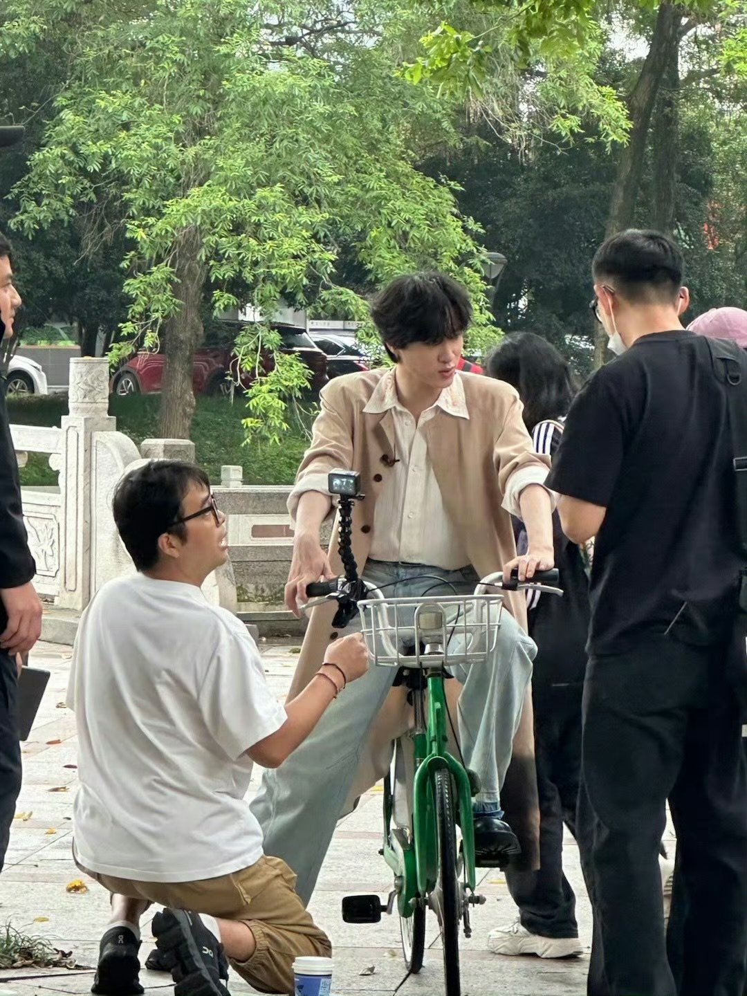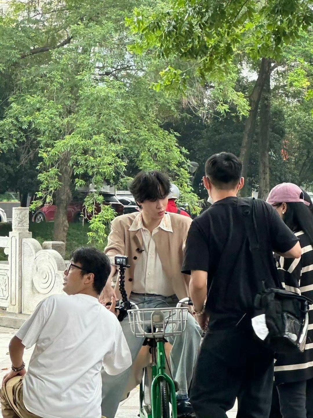 展轩扬州拍摄被偶遇网友扬州偶遇展轩拍摄 展轩扬州路透来袭!骑单车的他穿衬衫搭大衣,生图抗打颜值在线,随性又帅气,让人期待新作品。