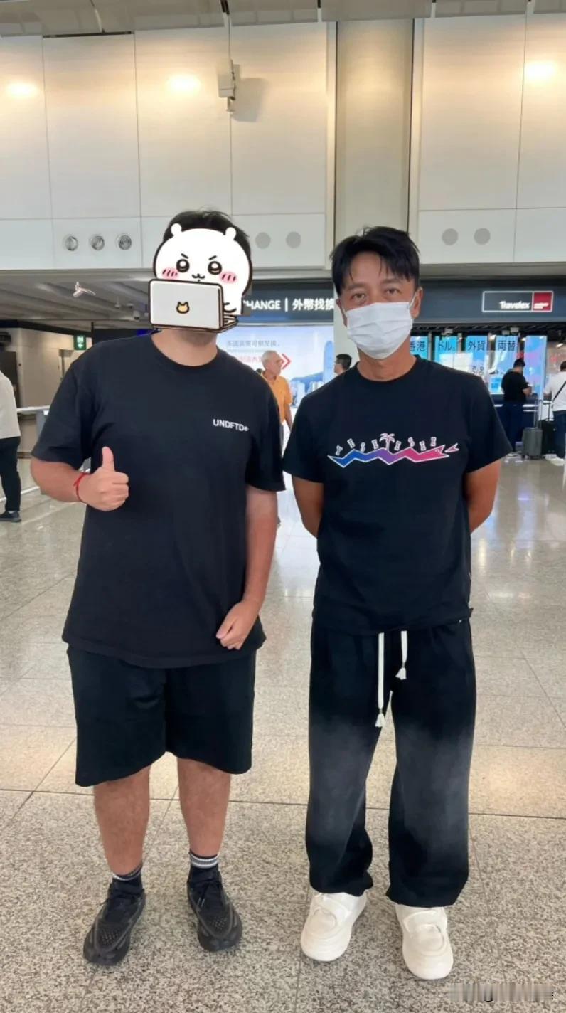 58岁的李克勤现身香港机场,他身形很瘦,身材有点五五分,穿着T恤配阔腿裤,脚踩白