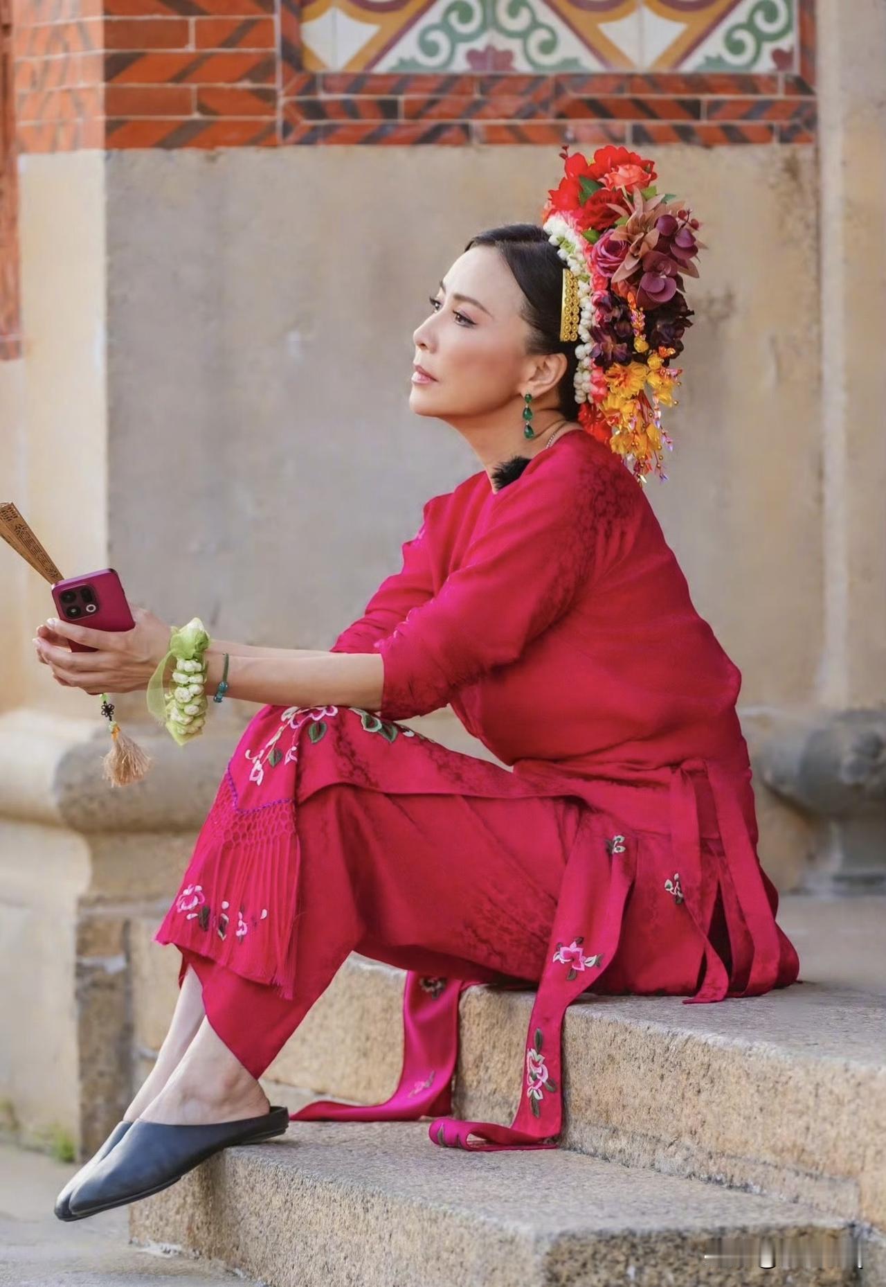 还别说,刘嘉玲还听适合泉州簪花,以她的气质而言,就很有一种渔家女子的味道。