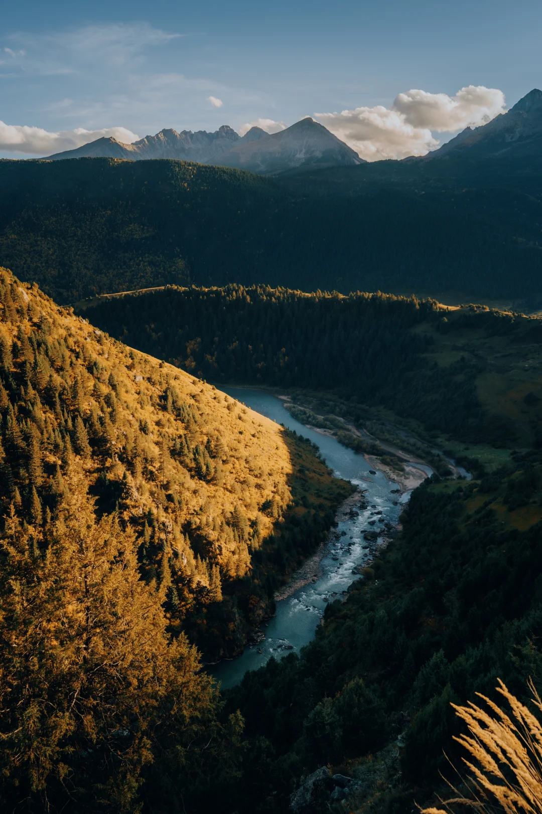 2,去这个温泉的路上,要经过一个悬崖路,我和我姐评价为【甘孜喀纳斯】。真的巨像喀纳斯,高山峡谷,森林,雪山,谷底有条碧绿的河流过,妥妥的月亮湾即视感。