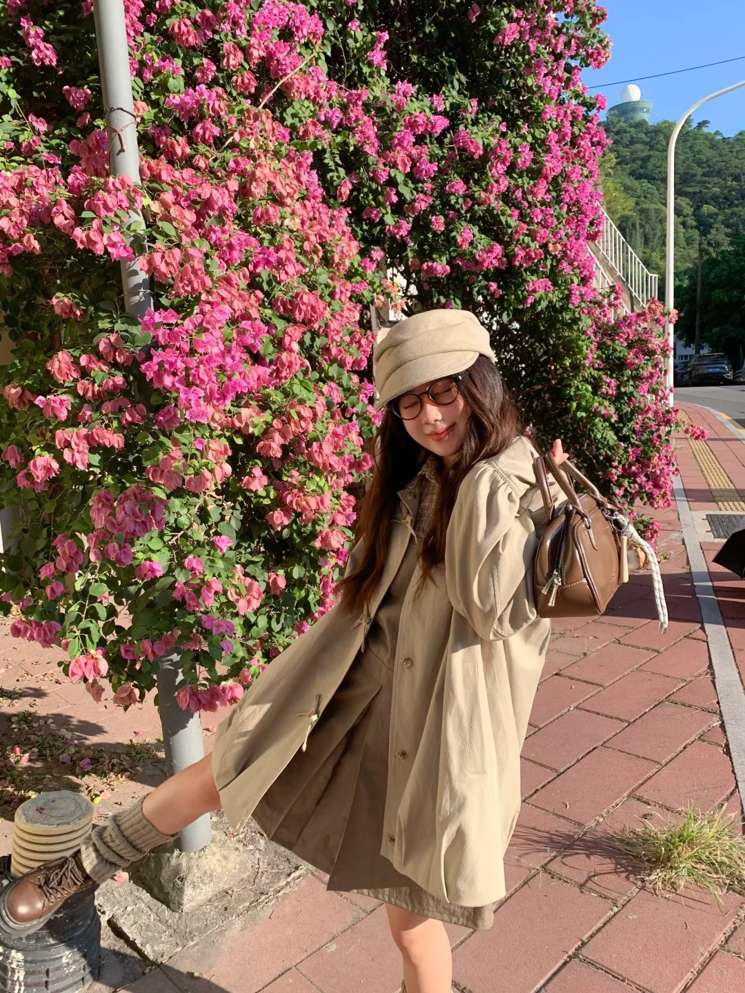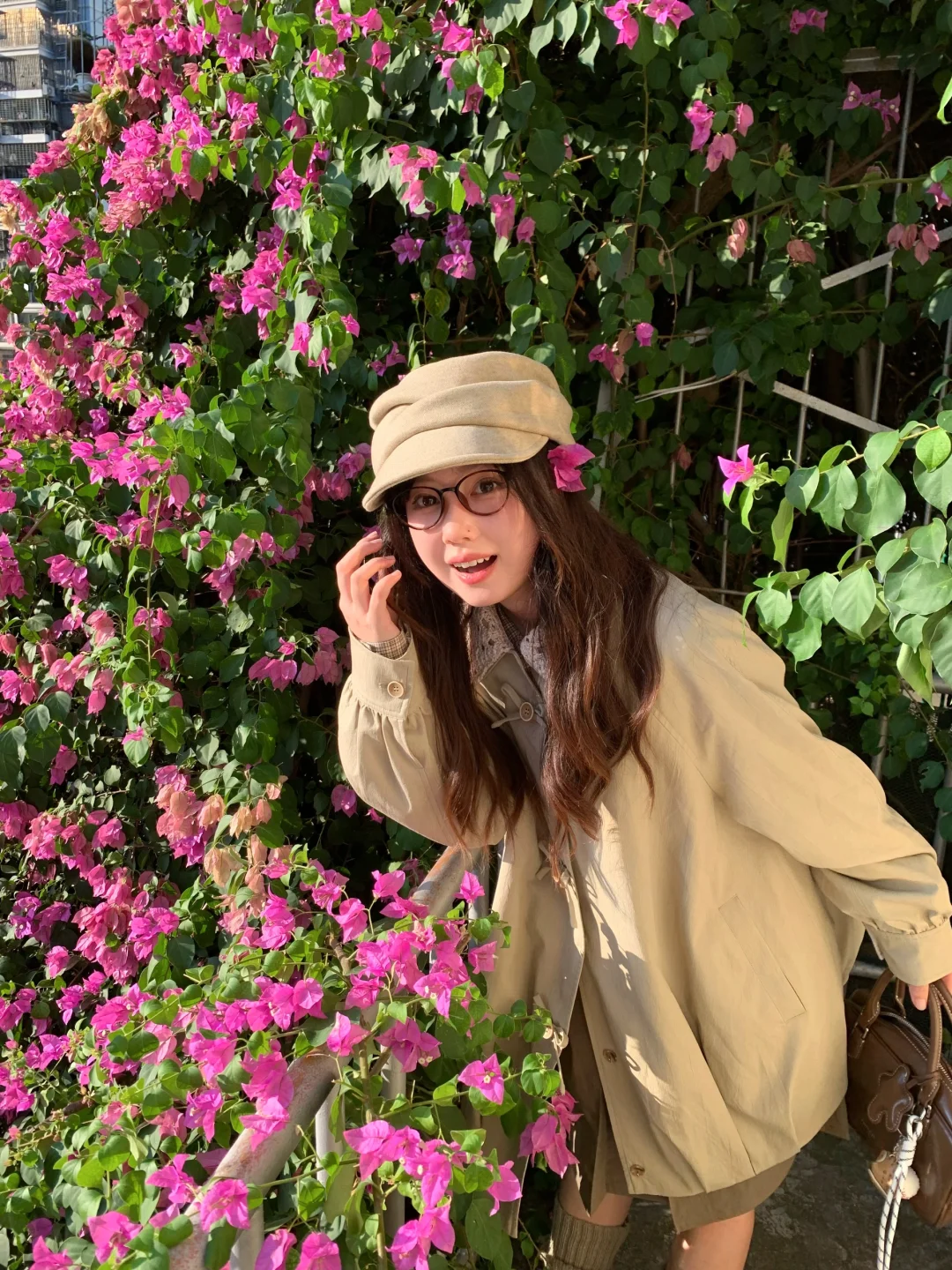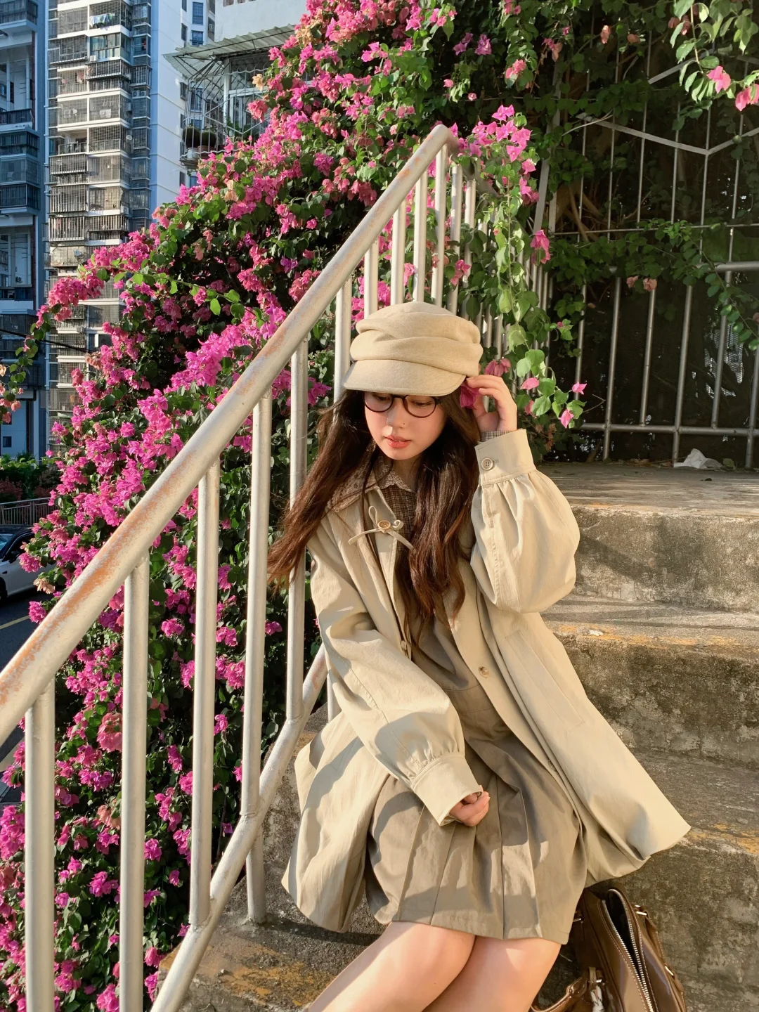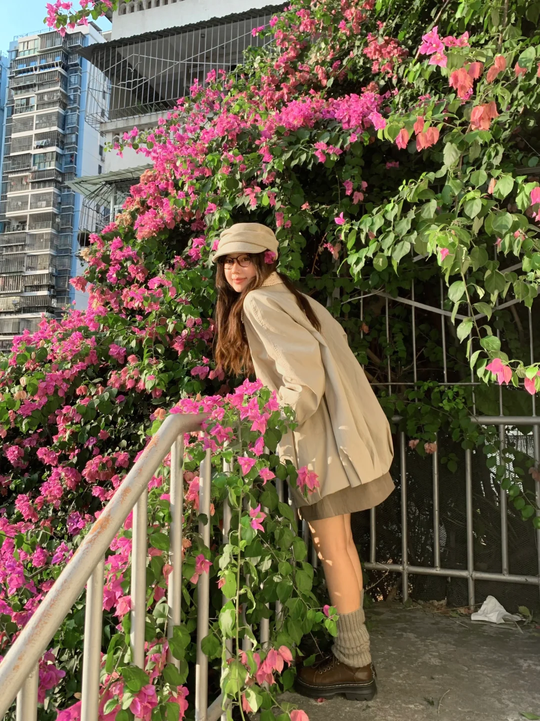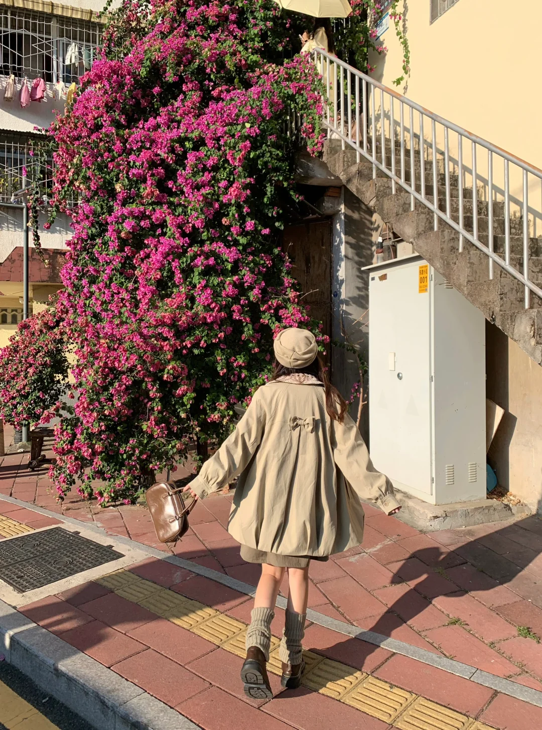三角梅瀑布也太出片了吧 又到了穿风衣的季节🍂叠叠乐一下~